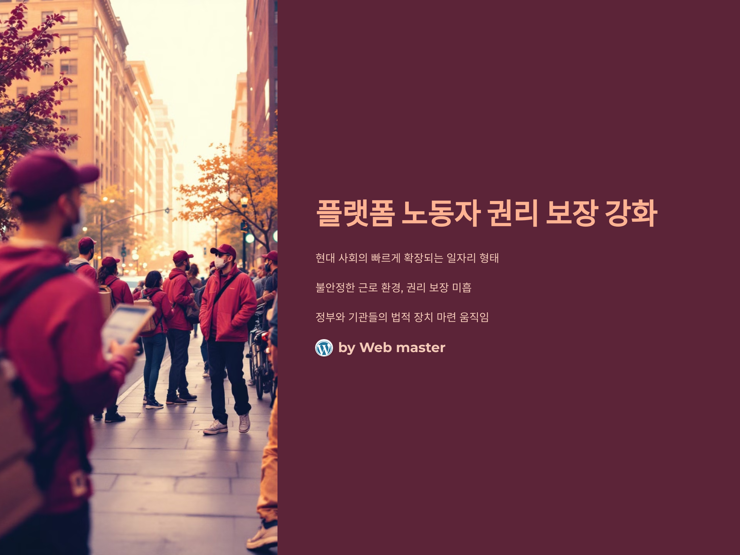플랫폼 노동은 현재 현대 사회에서 빠르게 확장되고 있는 일자리 형태 중 하나입니다. 그러나 그만큼 불안정하고, 근로자들의 권리가 제대로 보장되지 않은 상황에서 다양한 문제들이 발생하고 있습니다. 이에 따라 최근 정부와 관련 기관들이 플랫폼 노동자의 권리 보장을 위한 법적 장치를 마련하려는 움직임을 보이고 있으며, 이 변화는 노동 시장에 큰 영향을 미칠 것으로 예상됩니다. 본 글에서는 플랫폼 노동자의 권리 보장 강화를 위한 노력과 이로 인한 사회적 변화에 대해 깊이 있게 다뤄보겠습니다.