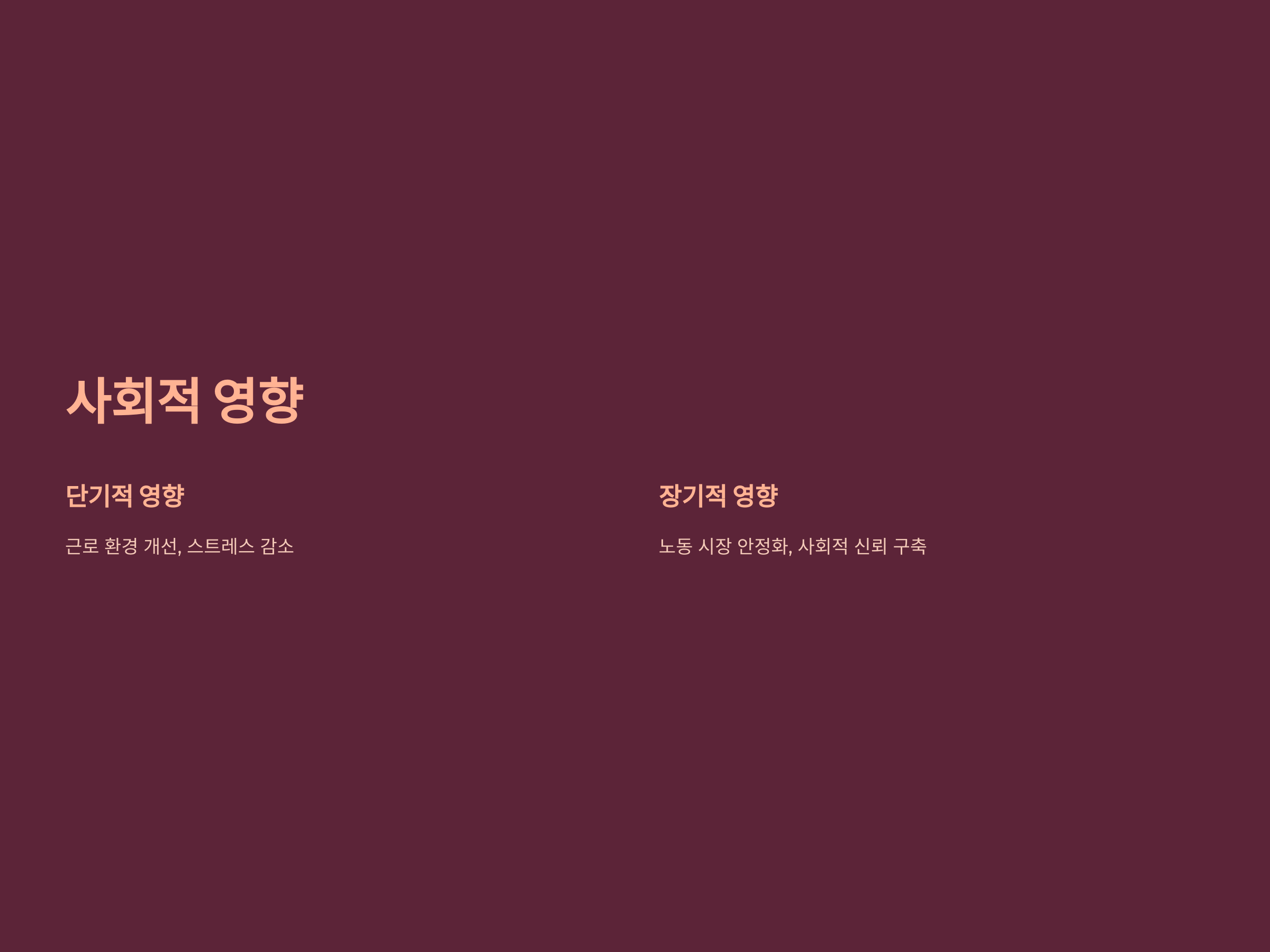 플랫폼 노동자들의 권리 보장이 강화되면, 단기적으로는 법적 보호를 받지 못했던 이들이 더 나은 근로 환경에서 일할 수 있게 됩니다. 이는 직장에서의 스트레스나 불안감을 줄여주어 정신적, 신체적 건강을 향상시킬 수 있습니다. 또한, 근로자들의 권리가 보장되면 노동 시장이 더욱 안정되고, 그로 인해 소비자와 기업의 신뢰도 또한 상승할 것입니다.