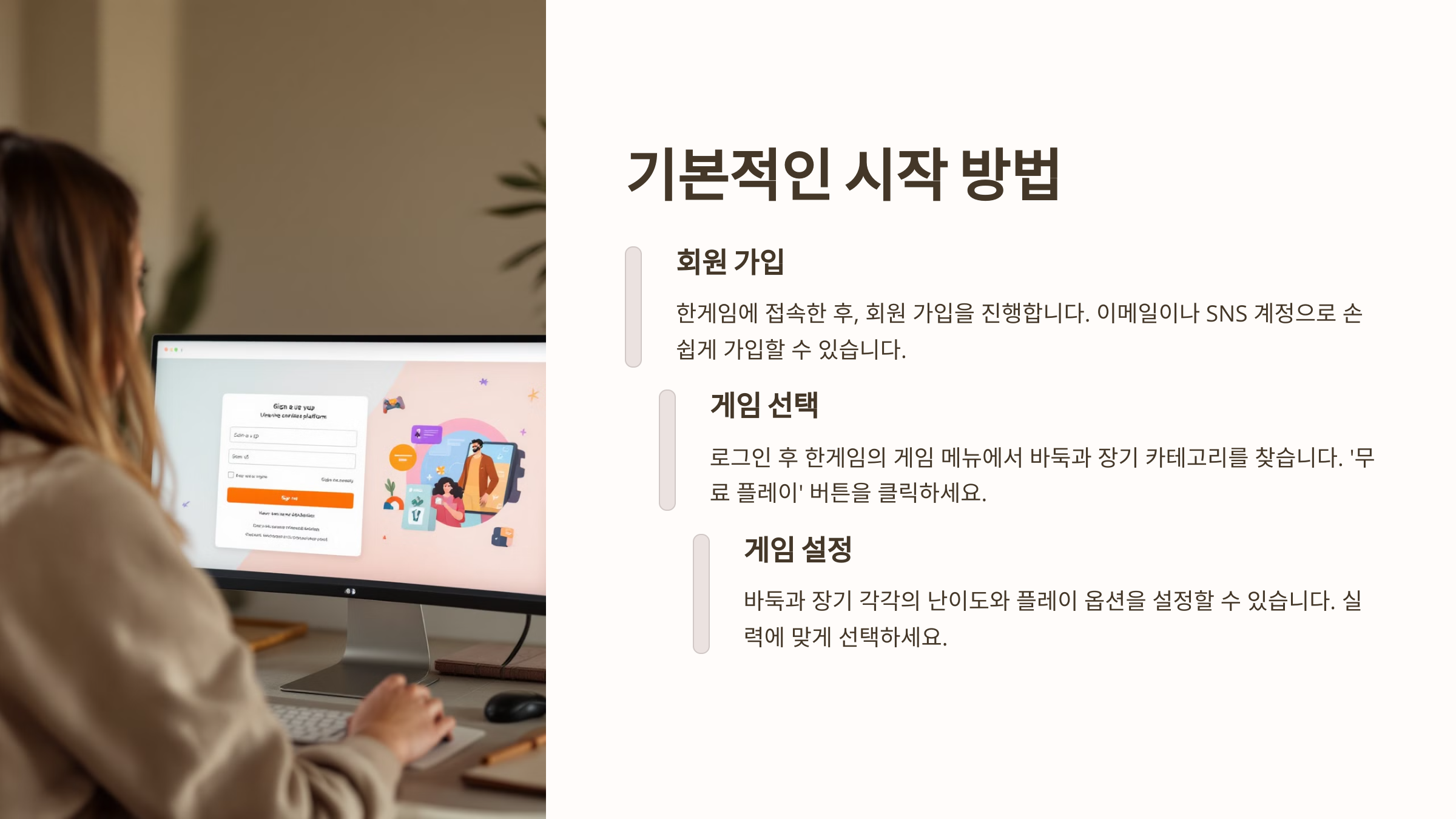 - 회원 가입: 한게임에 접속한 후, 회원 가입을 진행합니다. 가입 시 이메일이나 SNS 계정으로 손쉽게 가입할 수 있어, 로그인 절차가 간편합니다.