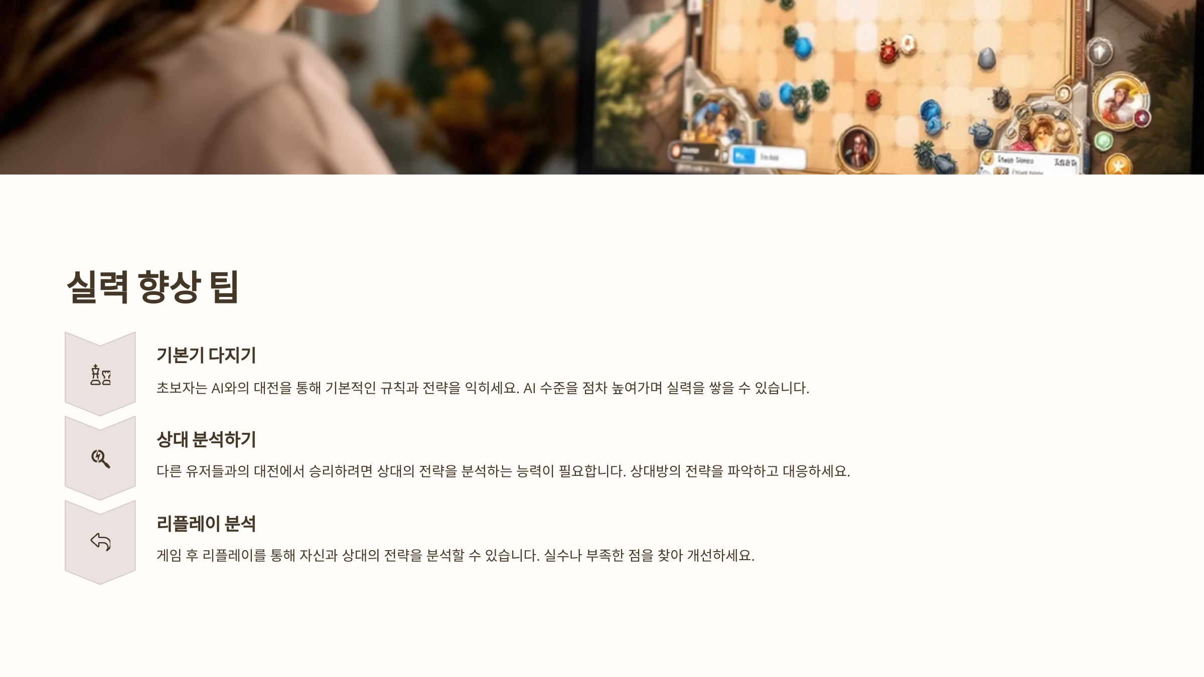 - 기본기 다지기: 초보자는 AI와의 대전을 통해 기본적인 규칙과 전략을 익히는 것이 중요합니다. AI의 수준을 점차 높여가며 실력을 쌓을 수 있습니다.
