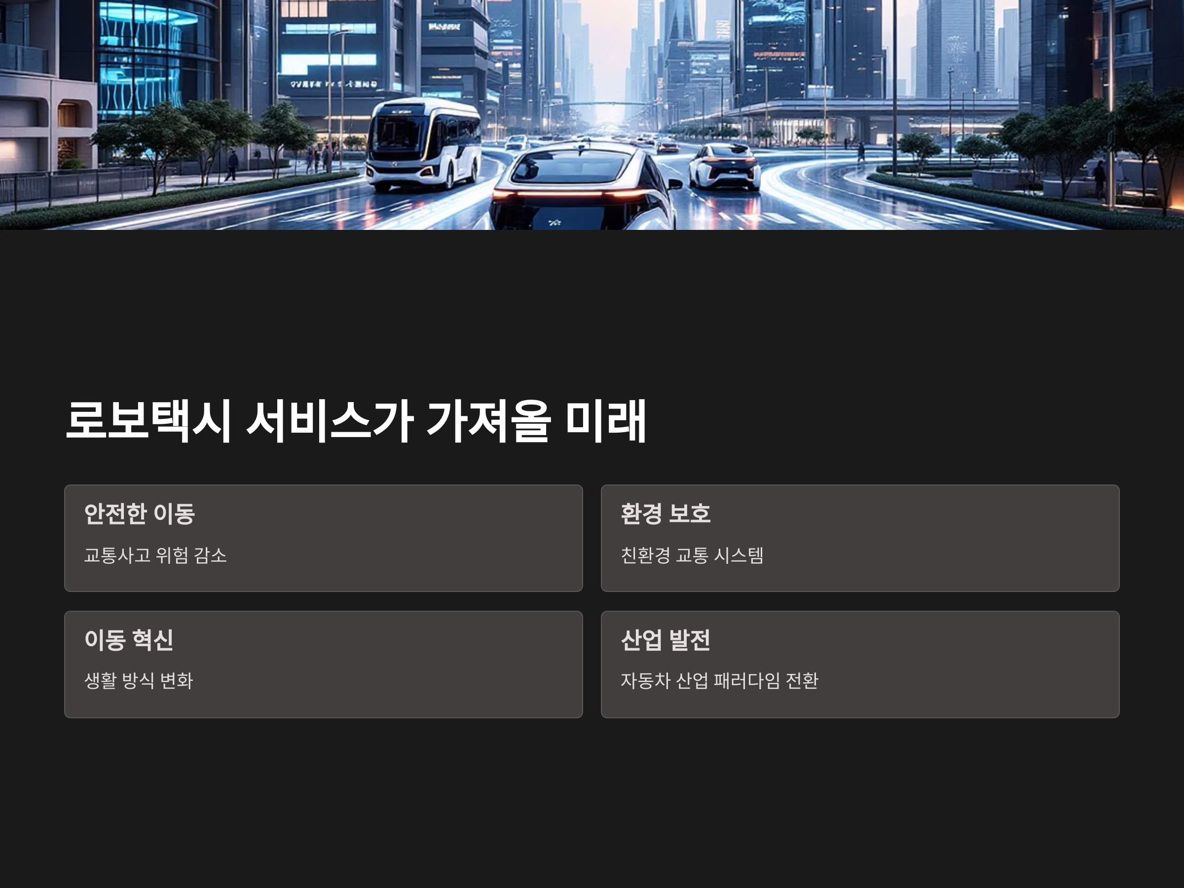 현대차의 로보택시 서비스는 단순한 이동 수단을 넘어, 사람들의 이동 방식을 혁신적으로 바꾸는 중요한 전환점이 될 것입니다. 앞으로 자율주행차의 발전과 함께 더욱 향상된 서비스가 제공될 것이며, 이는 우리 일상에 큰 영향을 미칠 것입니다.