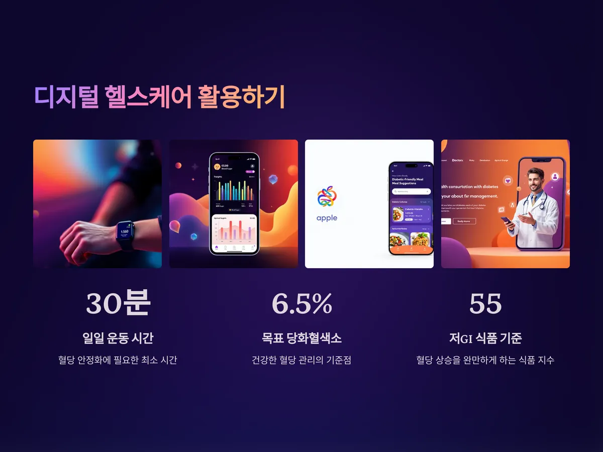 약물 복용 시에도 부작용이나 저혈당 위험성을 체크해야 하며, 식사 시간과 약 복용 시간을 정확히 지키는 습관이 필요합니다. 또한 스트레스를 줄이고 충분한 수면을 확보하는 것도 혈당 조절에 중요한 역할을 합니다. 최근에는 디지털 헬스 플랫폼을 활용하여 나만의 맞춤 관리 프로그램을 설계할 수 있는 서비스도 증가하고 있습니다.