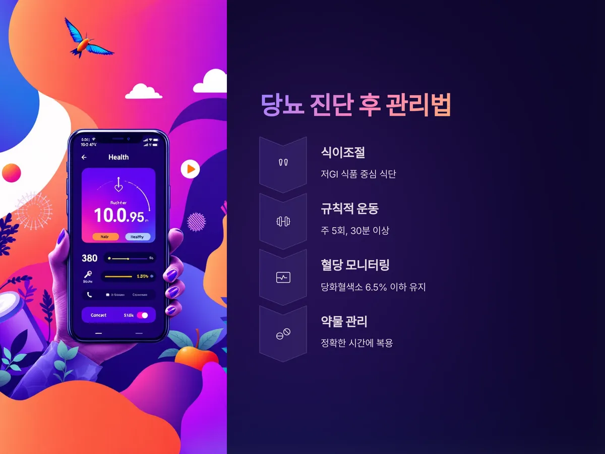 당뇨병으로 진단받았다면 생활습관 전반에 걸친 변화가 필요합니다. 가장 기본은 식이조절과 운동이지만, 혈당기록을 체계적으로 관리하고, 정기적인 검진을 받는 것이 핵심입니다. 특히 당화혈색소 수치를 체크하여 3개월 평균 혈당을 확인하고, 목표 수치(6.5% 이하)를 유지하는 것이 중요합니다.