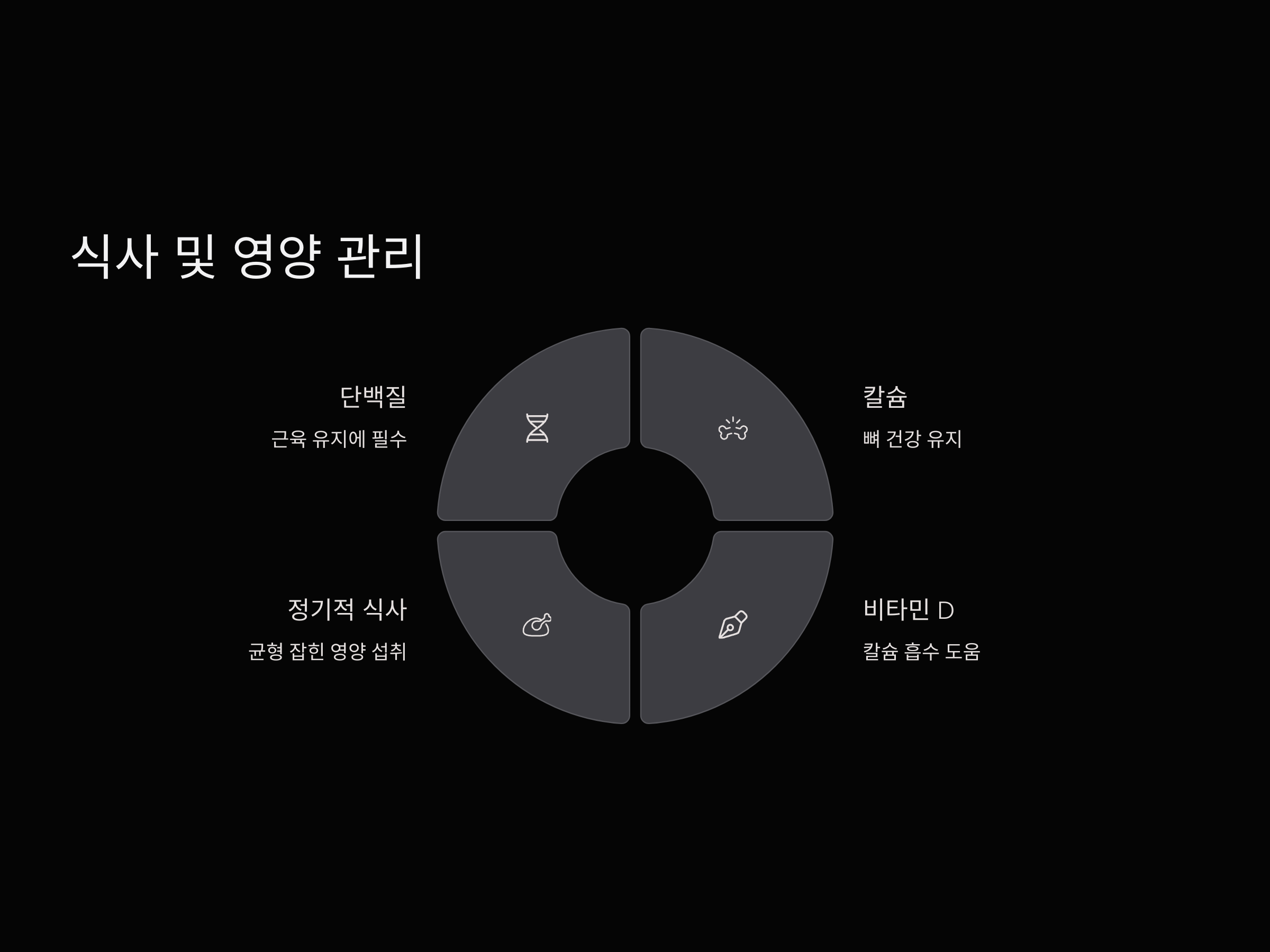혼자 사는 노인들은 종종 식사를 거르거나 불균형한 식사를 할 수 있습니다. 이는 건강에 매우 해롭기 때문에, 정기적인 식사와 균형 잡힌 영양 섭취가 필요합니다. 특히, 나이가 들수록 필요한 영양소가 달라지므로, 비타민 D, 칼슘, 단백질 등을 충분히 섭취할 수 있도록 식단을 계획하는 것이 중요합니다. 간단한 식사 준비를 위한 조리도구나 냉동식품을 활용하여, 쉽게 영양가 있는 음식을 섭취할 수 있는 방법을 모색해야 합니다.