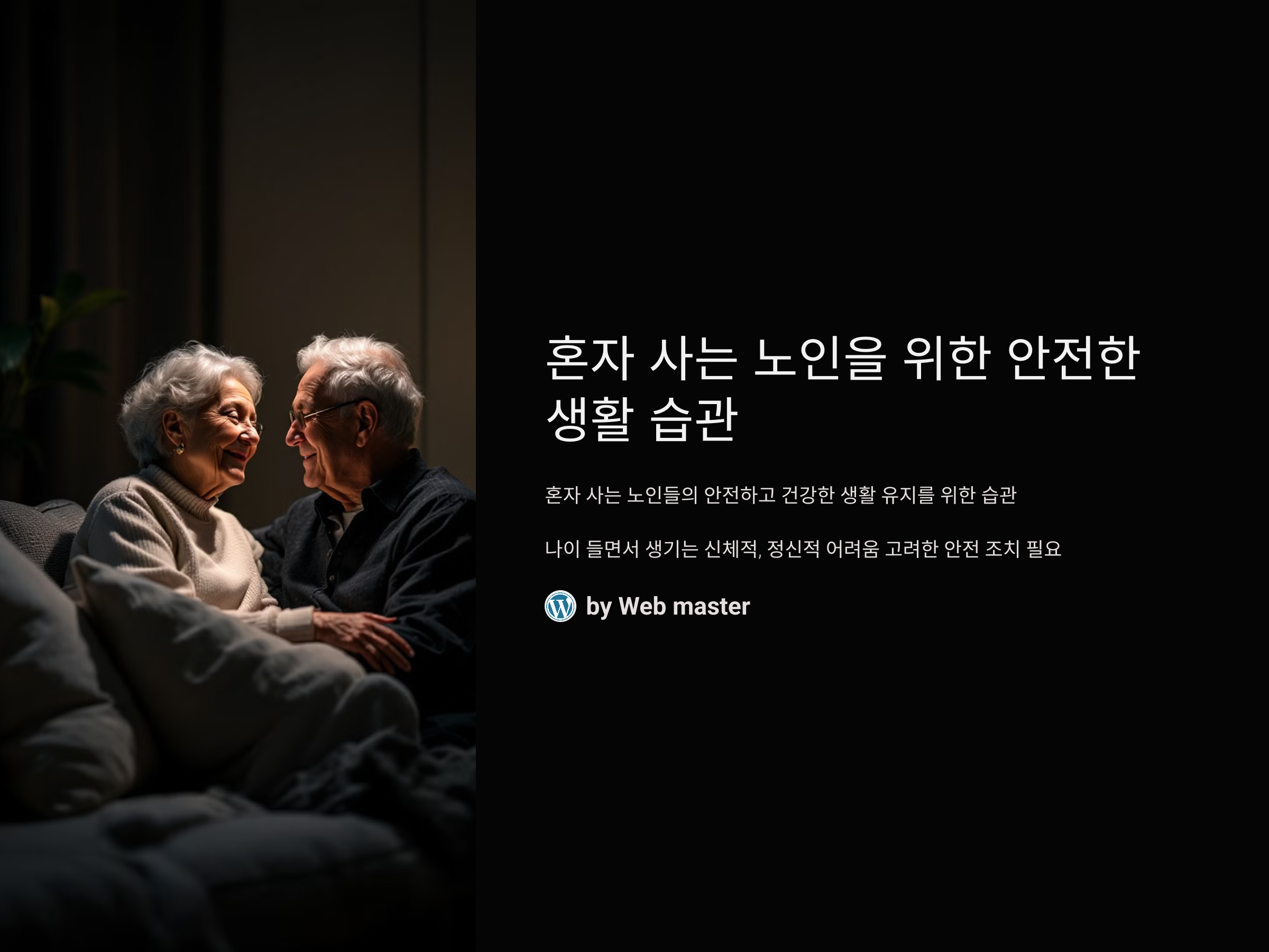 혼자 사는 노인들이 안전하고 건강한 생활을 유지하는 것은 매우 중요한 문제입니다. 나이가 들면서 몸의 변화와 다양한 신체적, 정신적 어려움이 생기기 때문에 이를 고려한 안전한 생활 습관이 필요합니다. 혼자 생활하는 노인들은 사고를 예방하고, 독립적인 생활을 지속하기 위해 여러 가지 안전 조치를 취할 필요가 있습니다. 이번 글에서는 혼자 사는 노인들이 실천할 수 있는 안전한 생활 습관을 소개합니다.