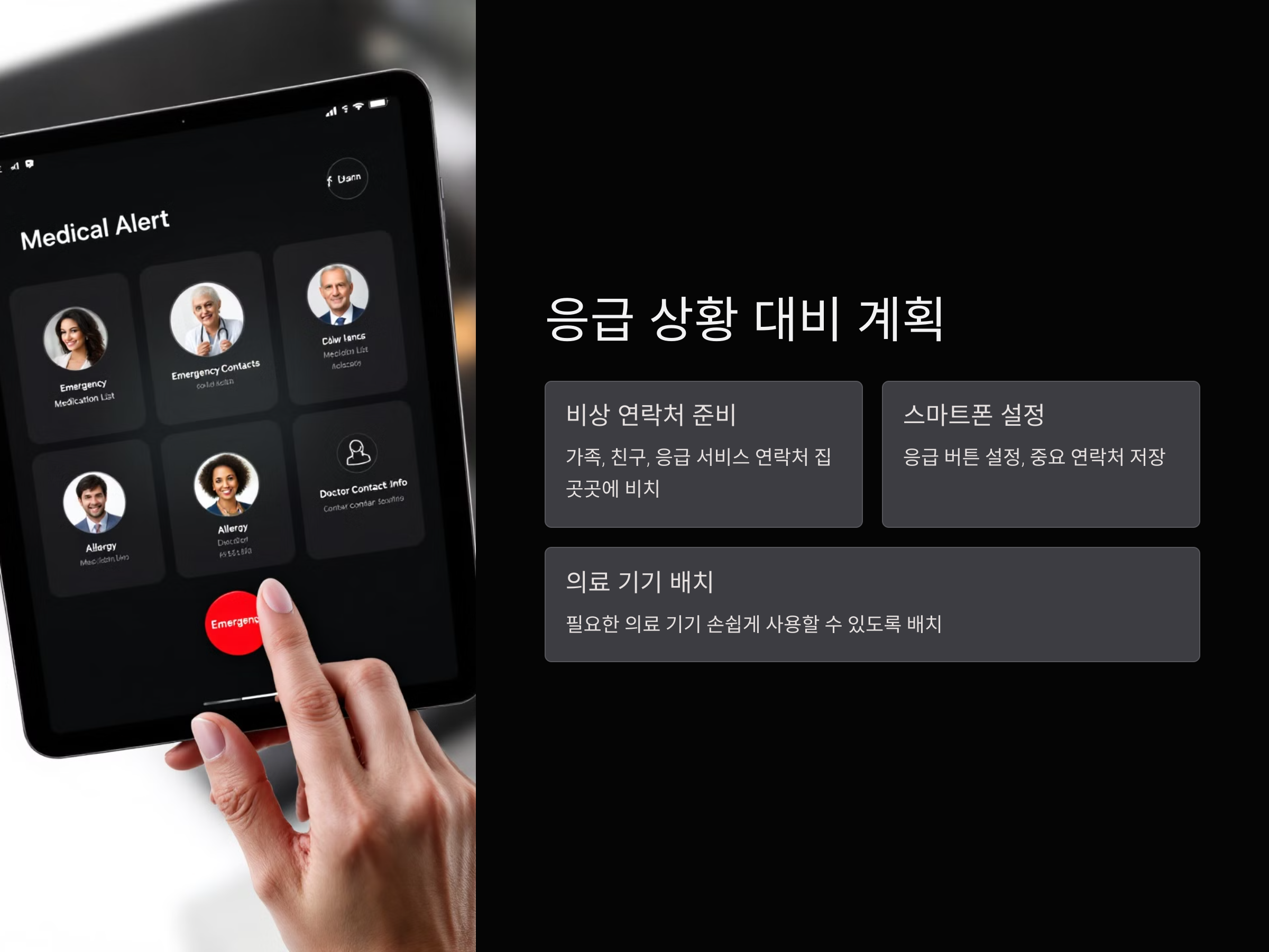 혼자 사는 노인이 사고를 당할 경우, 즉시 도움을 받을 수 있는 방법을 미리 준비하는 것이 중요합니다. 만약 응급 상황이 발생한다면 빠르게 도움을 받을 수 있도록 여러 가지 대비책을 마련해야 합니다. 먼저, 가까운 가족이나 친구들과 연락을 자주 취하고, 비상 연락처를 집 곳곳에 적어두는 것이 좋습니다. 또한, 스마트폰에 응급 연락처를 저장하거나, 응급 상황에 바로 전화를 걸 수 있는 버튼을 설정하는 것도 좋은 방법입니다. 의료 기기가 필요한 경우, 이를 손쉽게 사용할 수 있도록 배치해두는 것이 중요합니다.