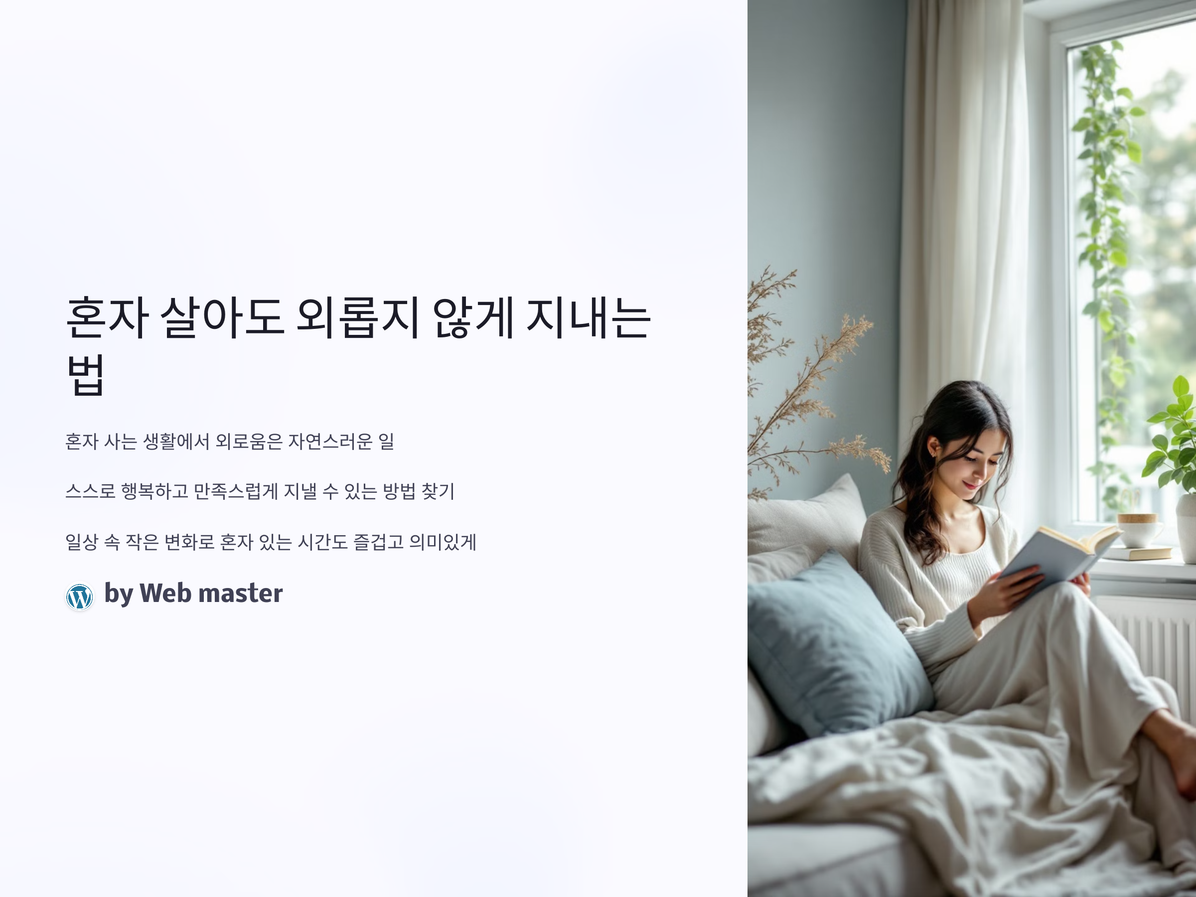 혼자 사는 생활에서 외로움을 느끼는 것은 자연스러운 일입니다. 특히, 처음 혼자 생활을 시작했을 때는 주변 사람들과의 소통이 줄어들면서 외로움을 쉽게 느낄 수 있습니다. 그러나 혼자 사는 것이 반드시 외로움과 연결되는 것은 아닙니다. 스스로 행복하고 만족스럽게 지낼 수 있는 방법을 찾는 것이 중요합니다. 이번 포스팅에서는 혼자 살면서도 외롭지 않게 지낼 수 있는 다양한 방법들을 소개해드리겠습니다.