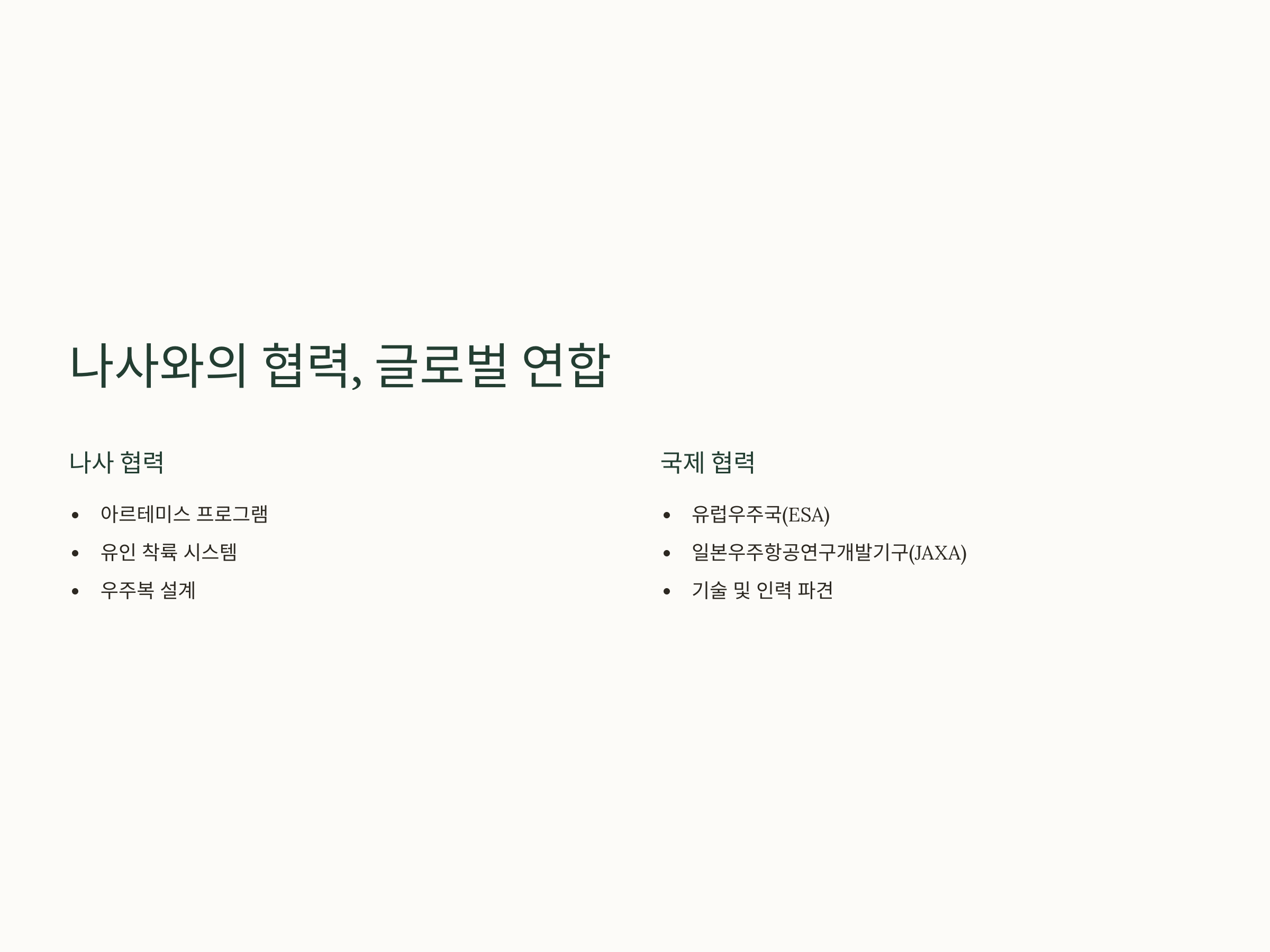 또한 국제 협력을 통해 유럽우주국(ESA), 일본우주항공연구개발기구(JAXA) 등도 일부 기술 및 인력 파견을 고려하고 있으며, 국제적인 공동 프로젝트로 확장될 가능성도 높아지고 있습니다. 이는 국가적 경계를 넘어선 인류 공동의 목표로서의 우주 탐사를 상징하는 변화입니다.