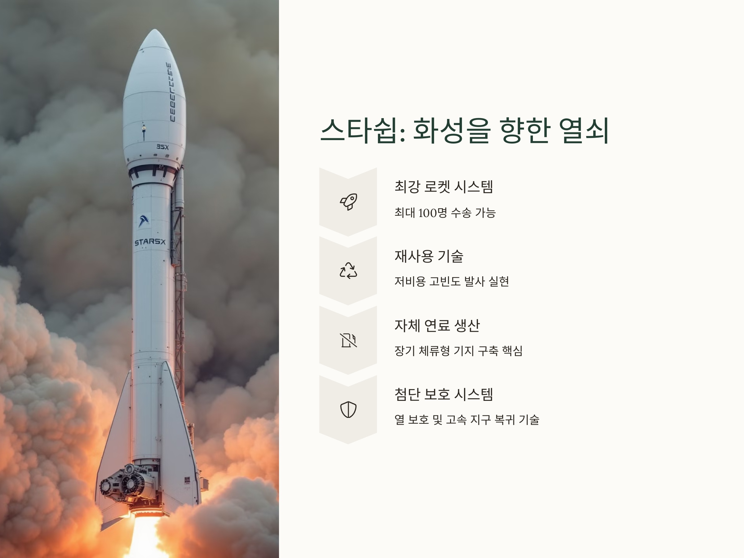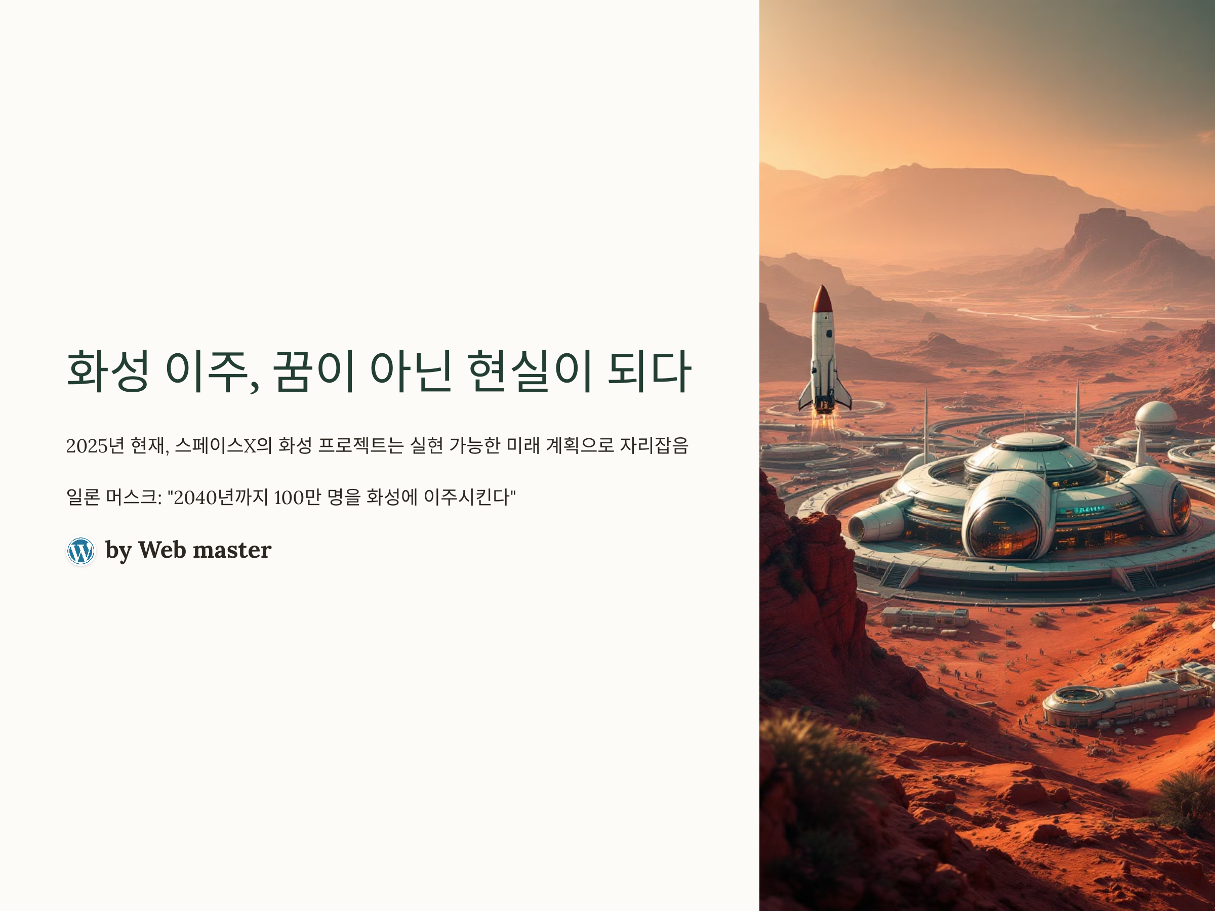 게다가 나사(NASA)와의 협력, 민간 우주인 대상의 우주 여행 상용화 계획 등으로 인해 화성 프로젝트는 더 이상 먼 미래의 이야기가 아닌 ‘다가오는 현실’이 되어가고 있습니다. 인류가 우주에 두 번째 고향을 만들기 위한 이 위대한 여정의 중심에는 스페이스X와 머스크의 리더십이 있습니다. 이번 포스팅에서는 이 프로젝트가 어떻게 구성되어 있고, 어떤 기술적, 사회적 변화와 가능성을 지니고 있는지 낱낱이 분석해보겠습니다.