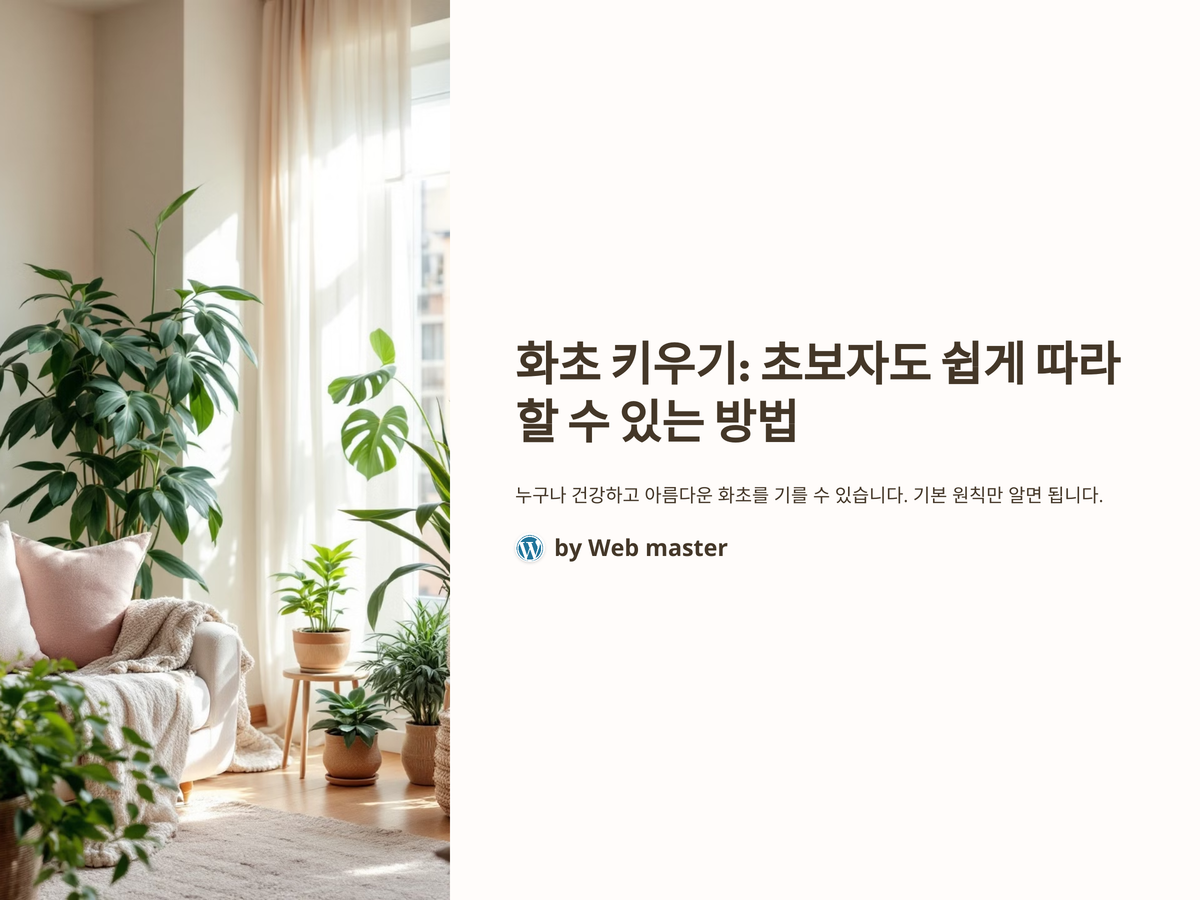 화초 키우기는 생각보다 간단하고 보람된 취미입니다. 초보자도 쉽게 따라할 수 있는 방법을 알아두면 누구나 건강한 화초를 키울 수 있습니다. 자신에게 맞는 화초를 선택하고, 물주기, 비료, 위치 등을 적절히 관리하면서 자연을 가까이에서 느껴보세요.