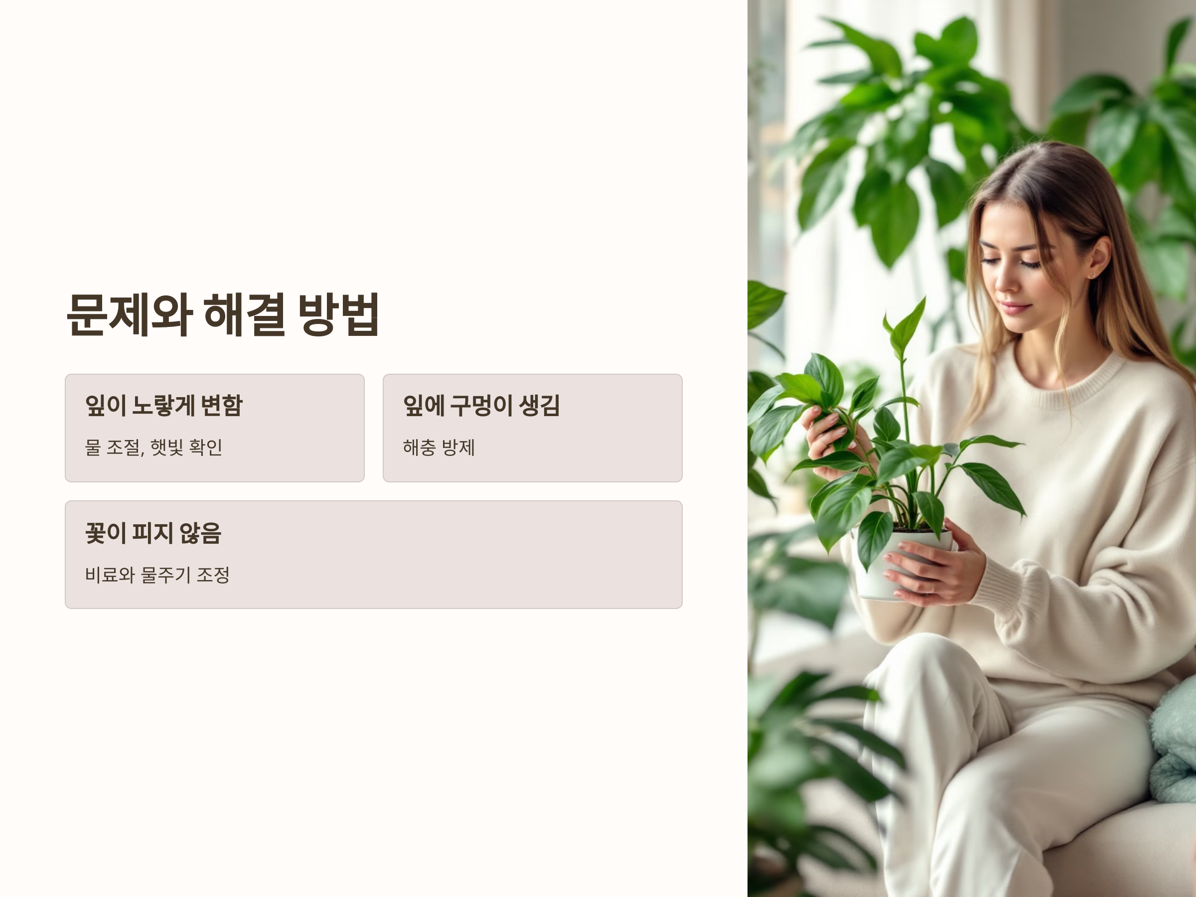화초를 키우다 보면 여러 가지 문제가 발생할 수 있습니다. 여기서 주요한 문제와 해결 방법을 살펴보겠습니다.