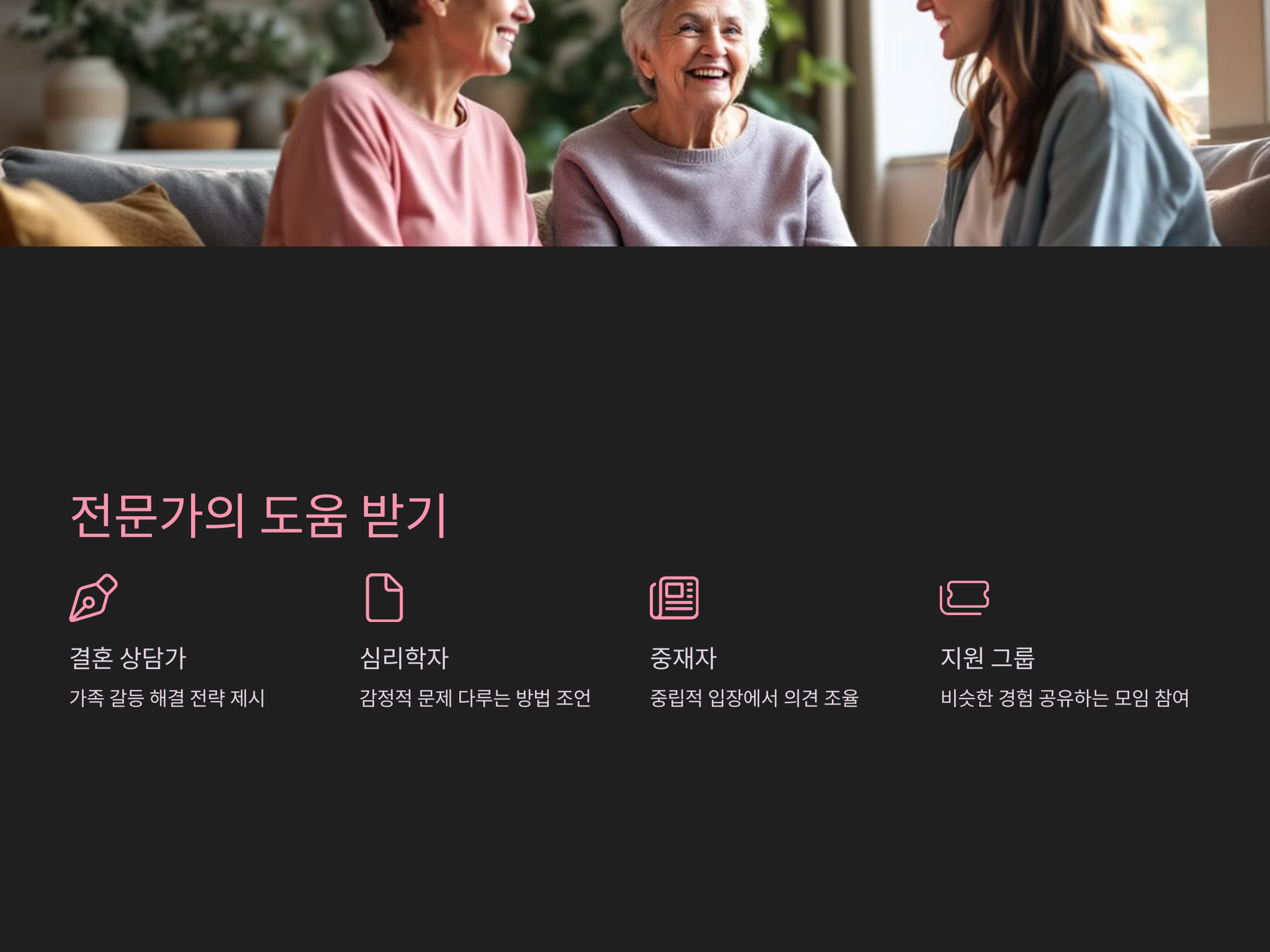 황혼 재혼은 때로 감정적인 문제를 일으킬 수 있기 때문에, 전문가의 도움을 받는 것도 좋은 방법이 될 수 있습니다. 결혼 상담가나 심리학자는 가족들의 감정을 다루는 데 큰 도움을 줄 수 있습니다. 전문가의 중재를 통해 서로의 생각을 조율하거나, 갈등을 해결할 수 있는 방법을 제시받을 수 있습니다. 가족들이 서로 다르게 생각할 수 있기 때문에, 중립적인 제3자의 의견을 받는 것도 큰 도움이 될 수 있습니다.
