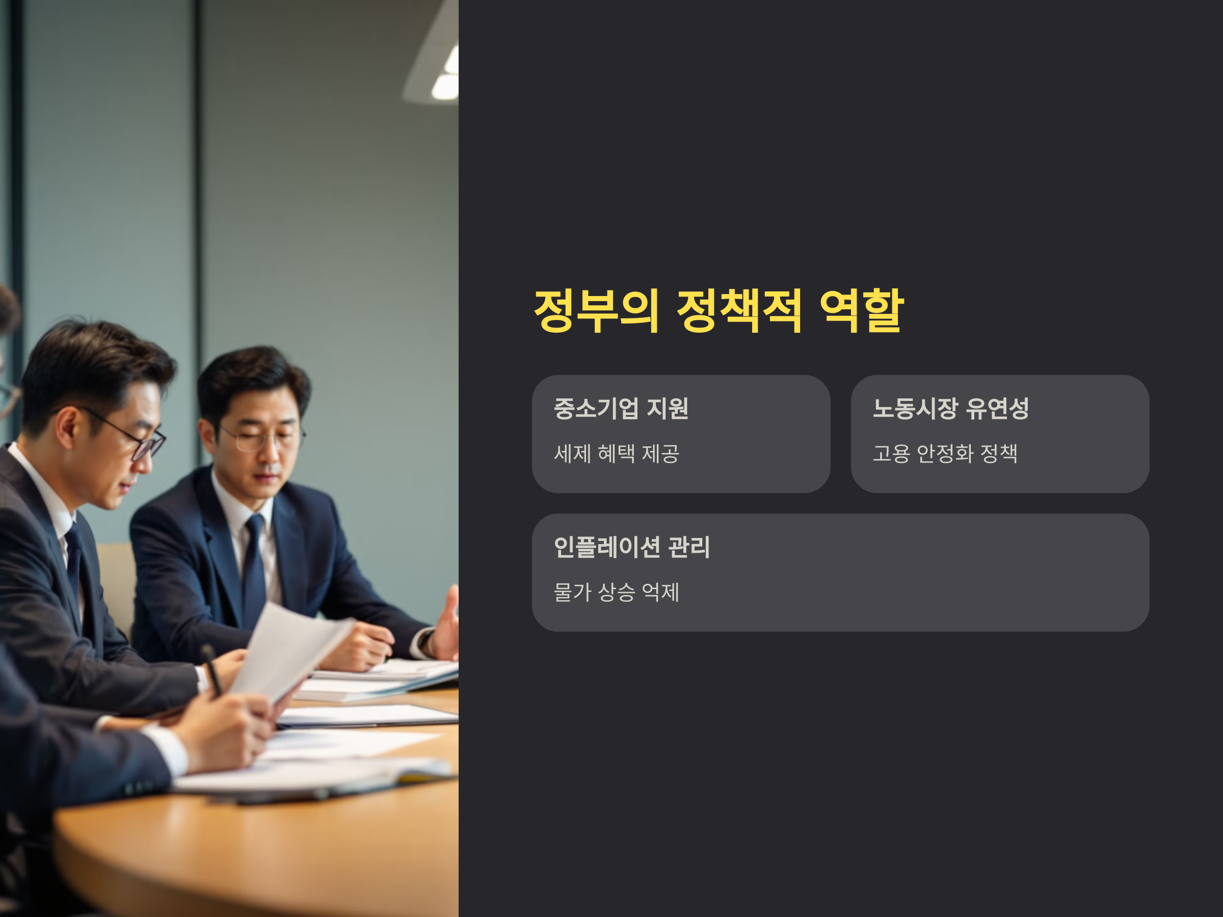 최저임금 인상은 정부의 정책이 중요한 역할을 합니다. 정부는 최저임금을 인상함으로써 발생할 수 있는 부정적인 영향을 최소화하려는 노력이 필요합니다. 예를 들어, 중소기업 지원 정책, 세제 혜택 제공, 그리고 노동 시장의 유연성을 높일 수 있는 방안들이 그것입니다.