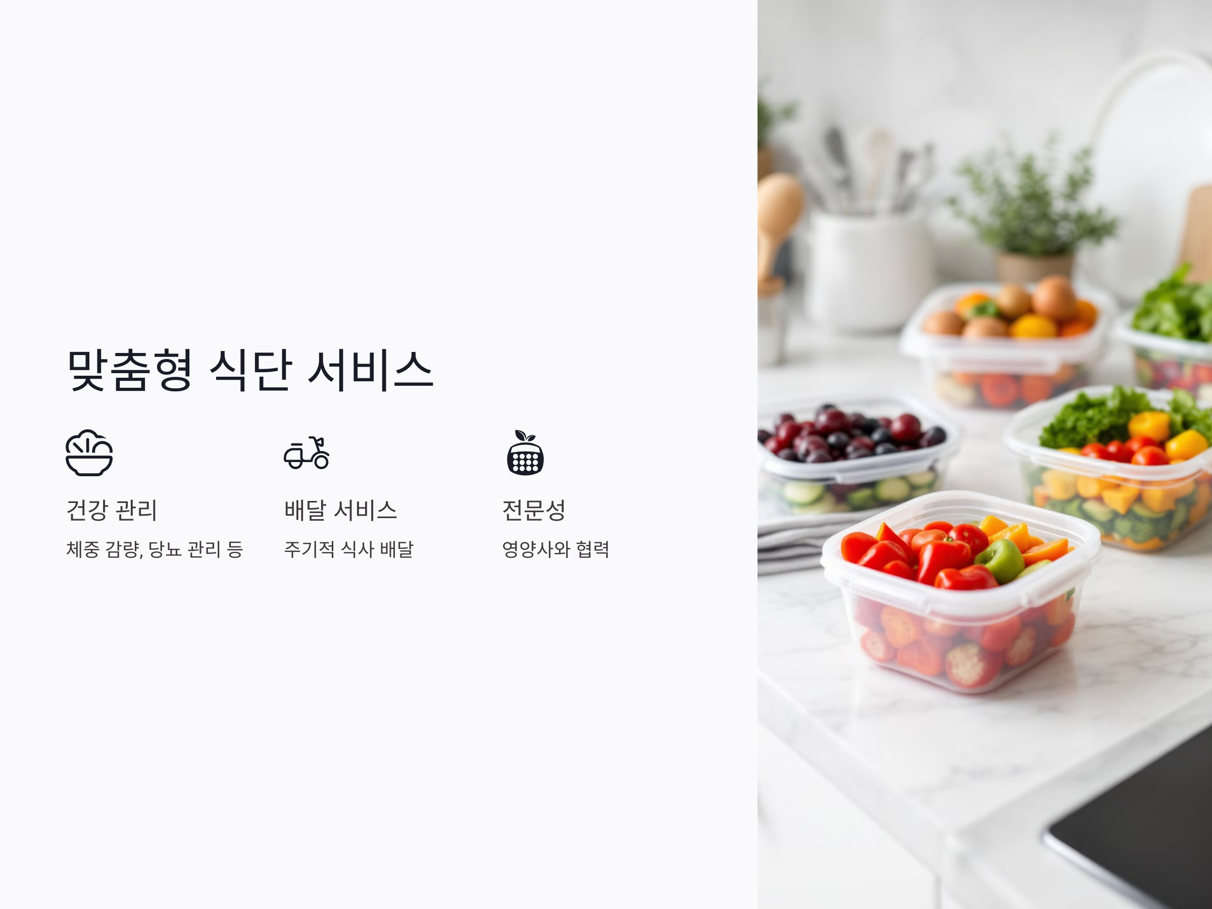 - 팁: 전문 영양사와 협력하거나 기존 식단 서비스를 벤치마킹하여 고객 맞춤형 식단을 제공하면 좋습니다.