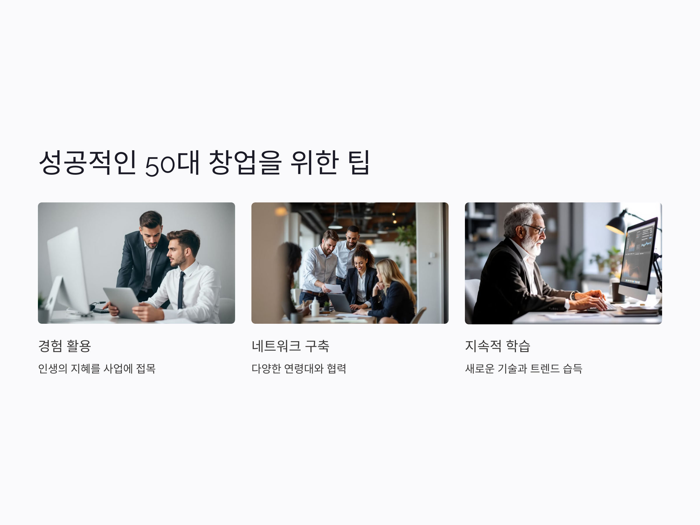 50대 이후의 창업은 그 어느 때보다 큰 도전이자 기회일 수 있습니다. 많은 사람들이 은퇴 후에 나만의 사업을 시작하려 하지만, 그 과정에서 무엇을 해야 할지 고민이 많습니다. 특히, 젊은 세대에 비해 체력적인 부분이나 기술적 부분에서 약점을 느낄 수 있기에 창업 아이템 선택에 신중을 기해야 합니다.
