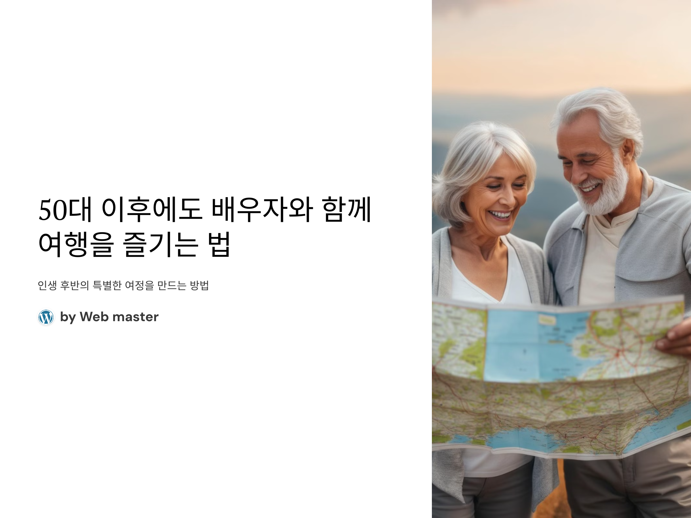 50대 이후에도 배우자와 함께하는 여행은 그 어떤 여행보다 의미 있고 특별한 경험이 될 수 있습니다. 여행을 통해 서로의 취향을 이해하고, 새로운 경험을 나누며, 관계를 더욱 돈독하게 만들 수 있습니다. 중요한 것은 여행을 떠날 때 서로의 건강과 취향을 고려하여, 편안하고 즐거운 여행을 만들 수 있도록 하는 것입니다. 앞으로도 배우자와 함께 여행을 떠나며, 새로운 추억을 쌓아가세요.