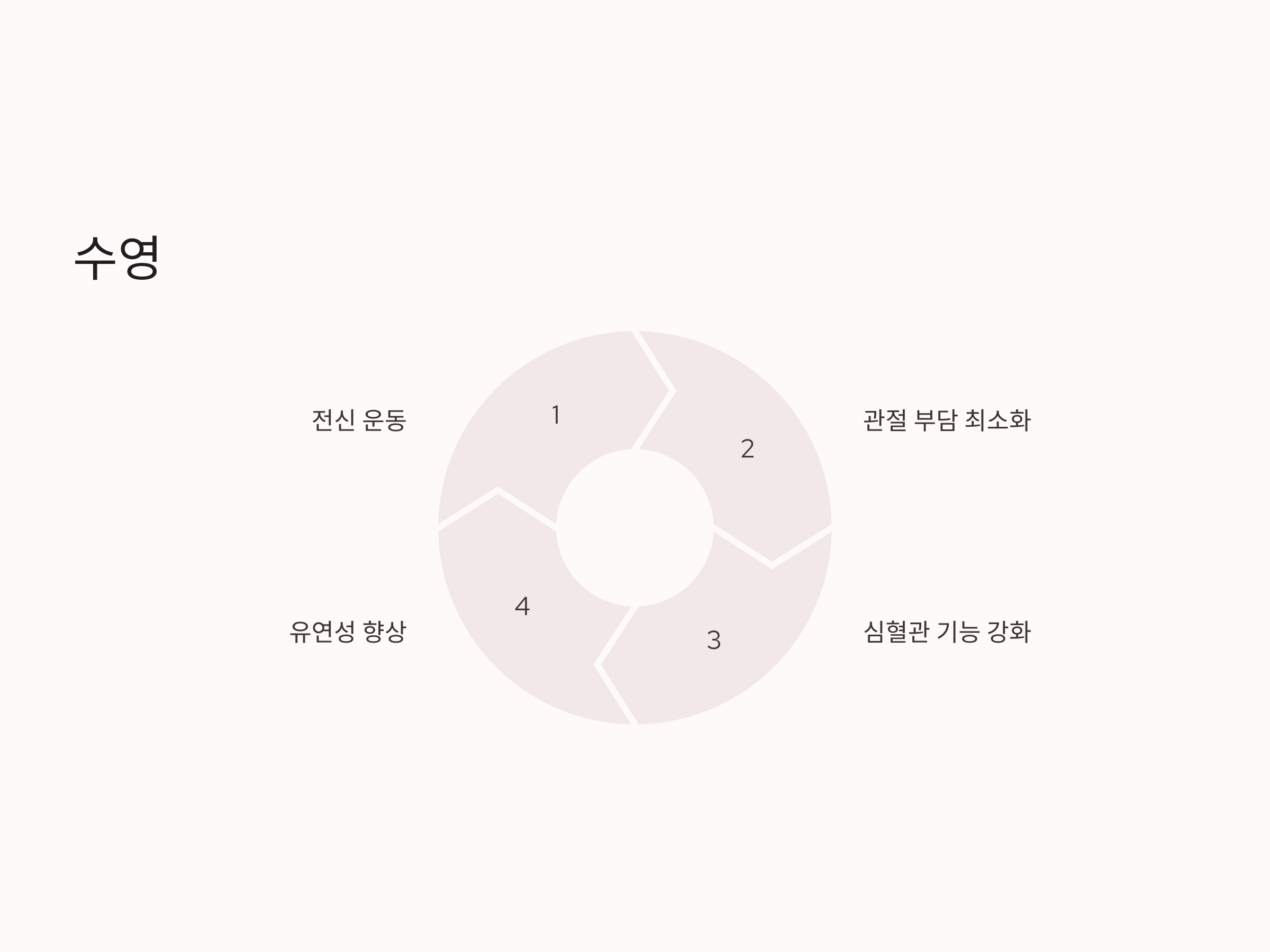 수영은 전신을 골고루 사용하면서 심혈관 기능과 근육을 동시에 강화하는 운동입니다. 수영의 큰 장점은 관절에 부담을 최소화하면서 운동 효과를 극대화할 수 있다는 점입니다. 물속에서는 체중이 덜 느껴지므로 관절에 부담을 주지 않으면서도 근력 운동과 유산소 운동 효과를 동시에 얻을 수 있습니다.