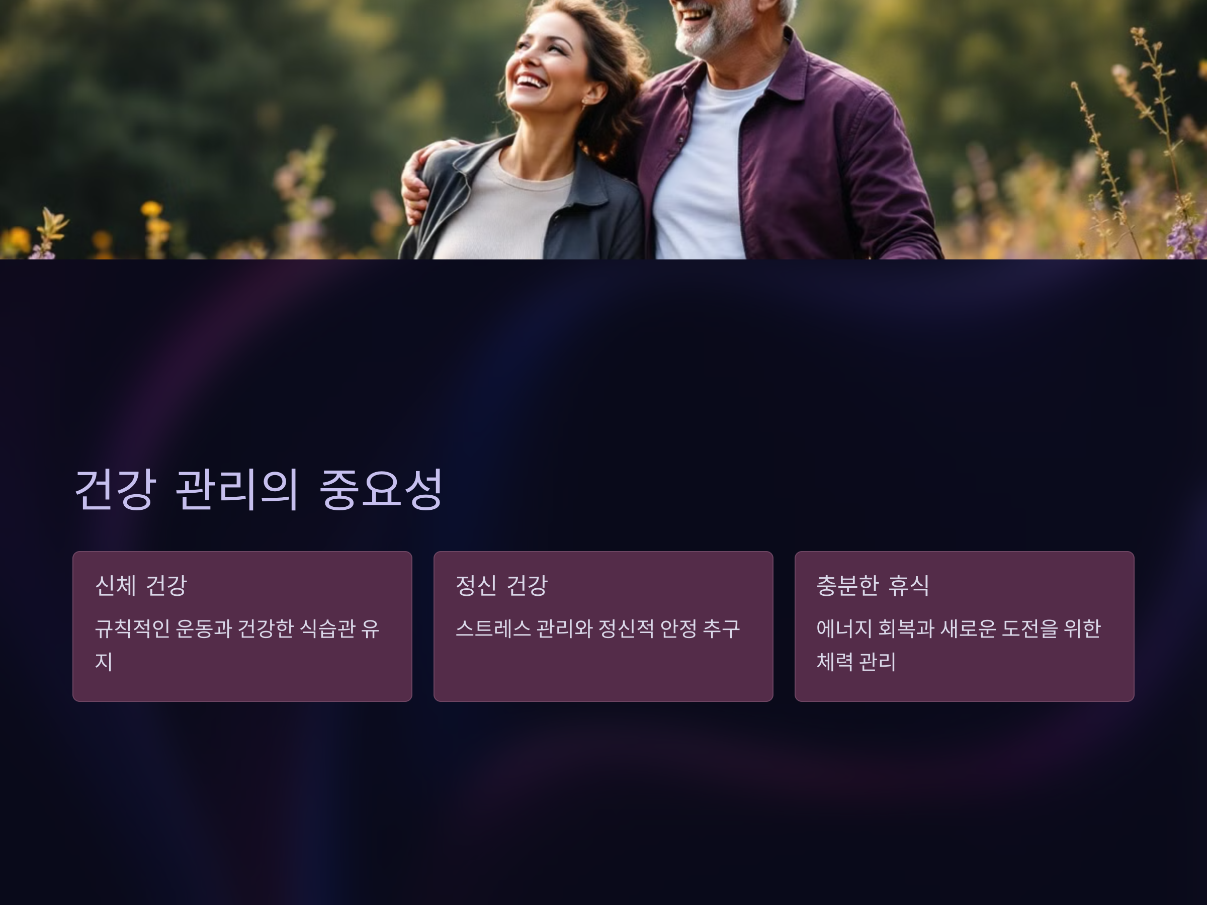 50대 이후의 삶에서 건강은 매우 중요한 요소입니다. 지속적으로 성장하는 사람들은 자신들의 신체와 정신 건강을 철저히 관리합니다. 이를 위해 규칙적인 운동, 건강한 식습관, 충분한 휴식 등을 지키며, 몸과 마음을 잘 돌봅니다. 이러한 노력은 결국 더 많은 에너지를 제공하고, 새로운 도전이나 학습을 할 수 있는 체력을 유지하는 데 큰 도움이 됩니다.