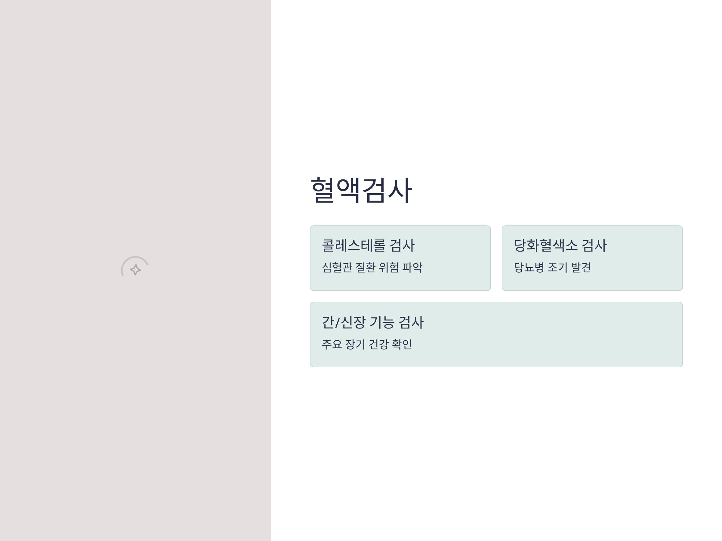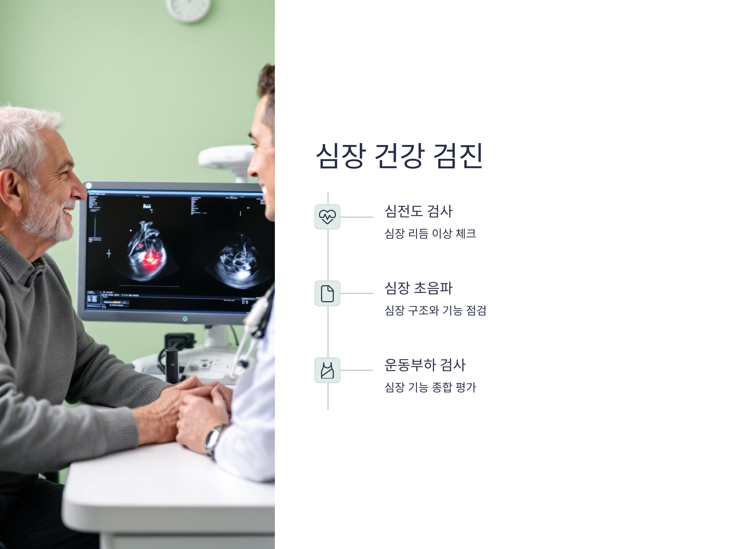 - 심전도 검사(EKG): 심장 리듬의 이상을 체크하여 심장 질환의 초기 징후를 파악합니다.