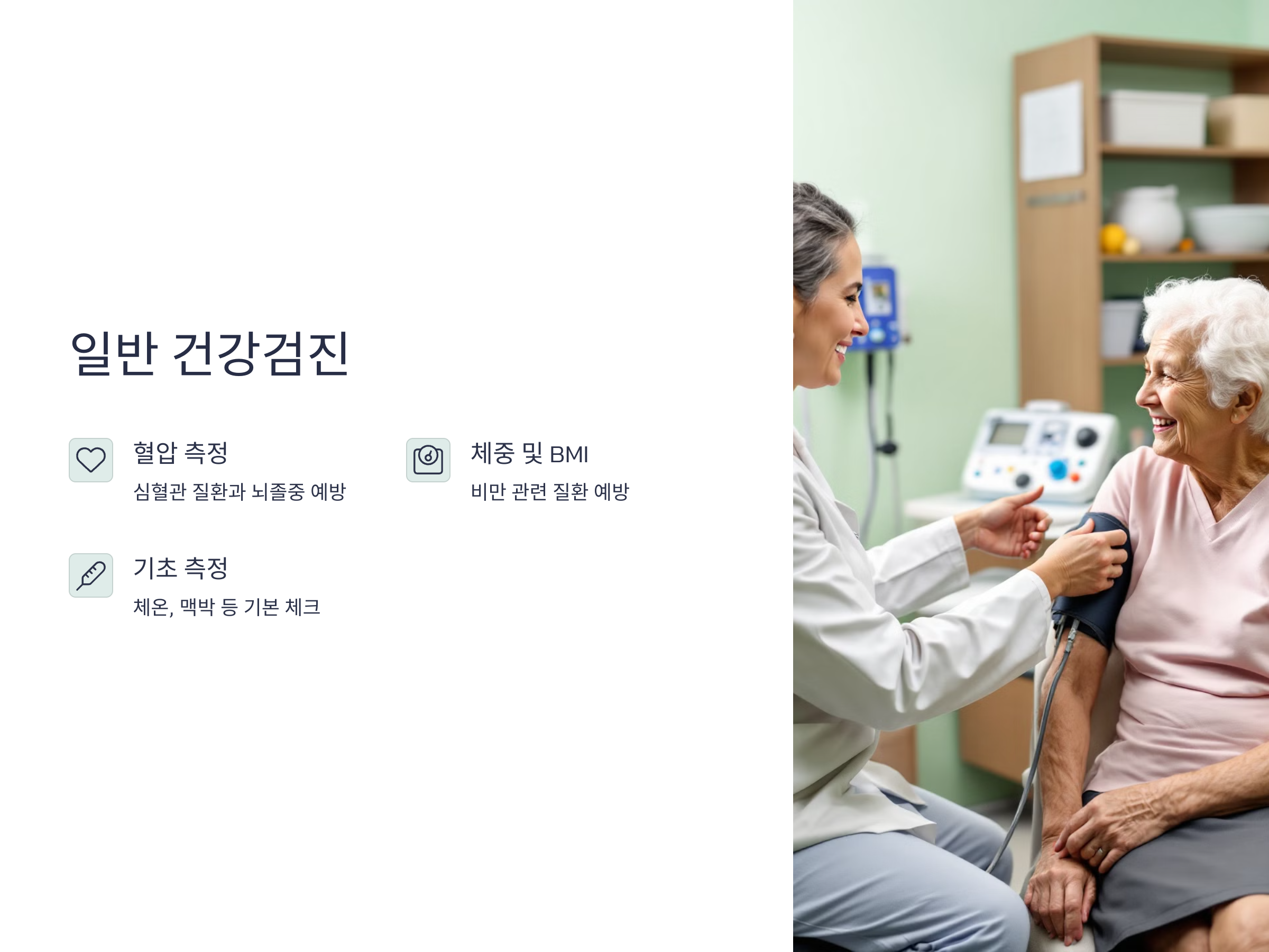 - 혈압 측정: 고혈압은 심혈관 질환과 뇌졸중의 주요 원인입니다. 50대 이후에는 매년 혈압을 측정하여 이상이 없는지 확인하는 것이 중요합니다.