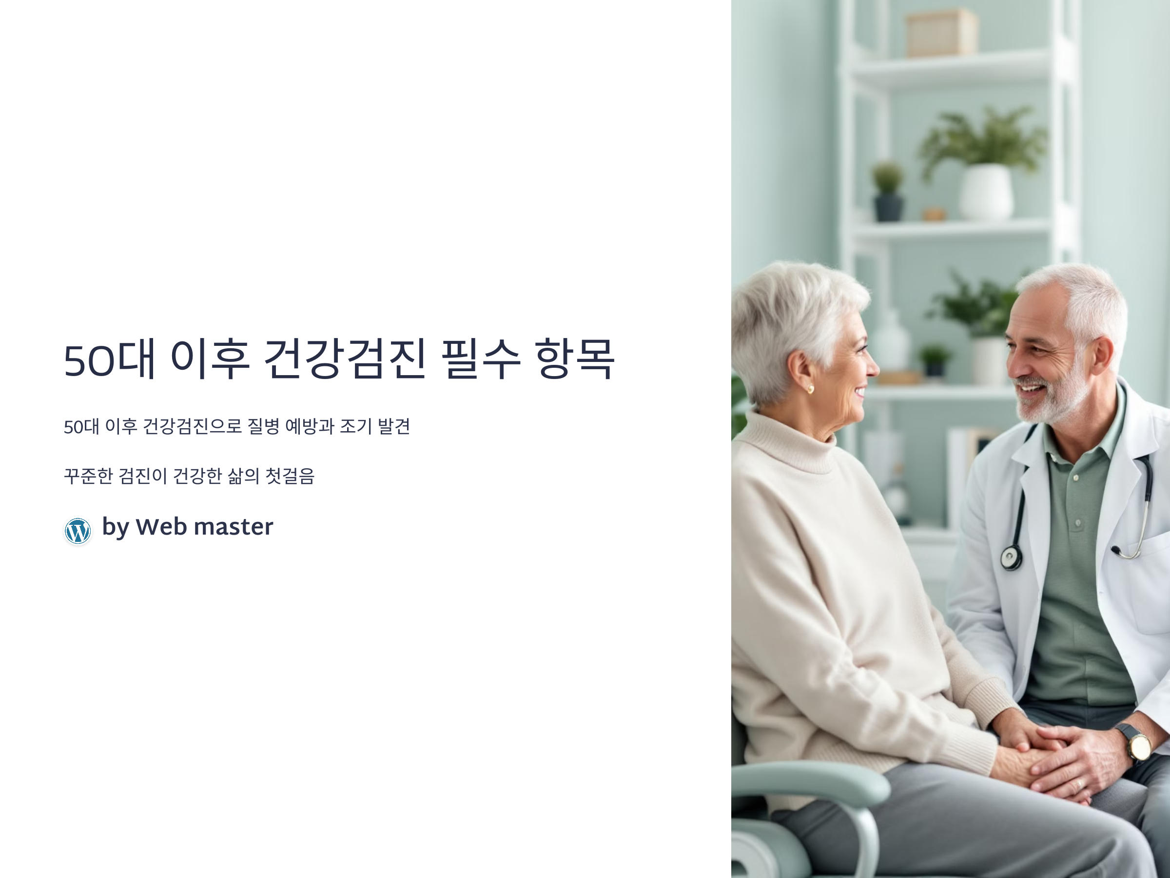 50대 이후, 우리 몸은 자연스럽게 여러 가지 변화가 일어나는 시기입니다. 이때에는 건강검진을 통해 미리 질병을 예방하고 조기 발견하는 것이 중요합니다. 이 글에서는 50대 이후 건강검진에서 반드시 체크해야 할 필수 항목들을 정리해 보겠습니다. 꾸준한 검진은 더 건강한 삶을 위한 첫걸음이 될 것입니다.