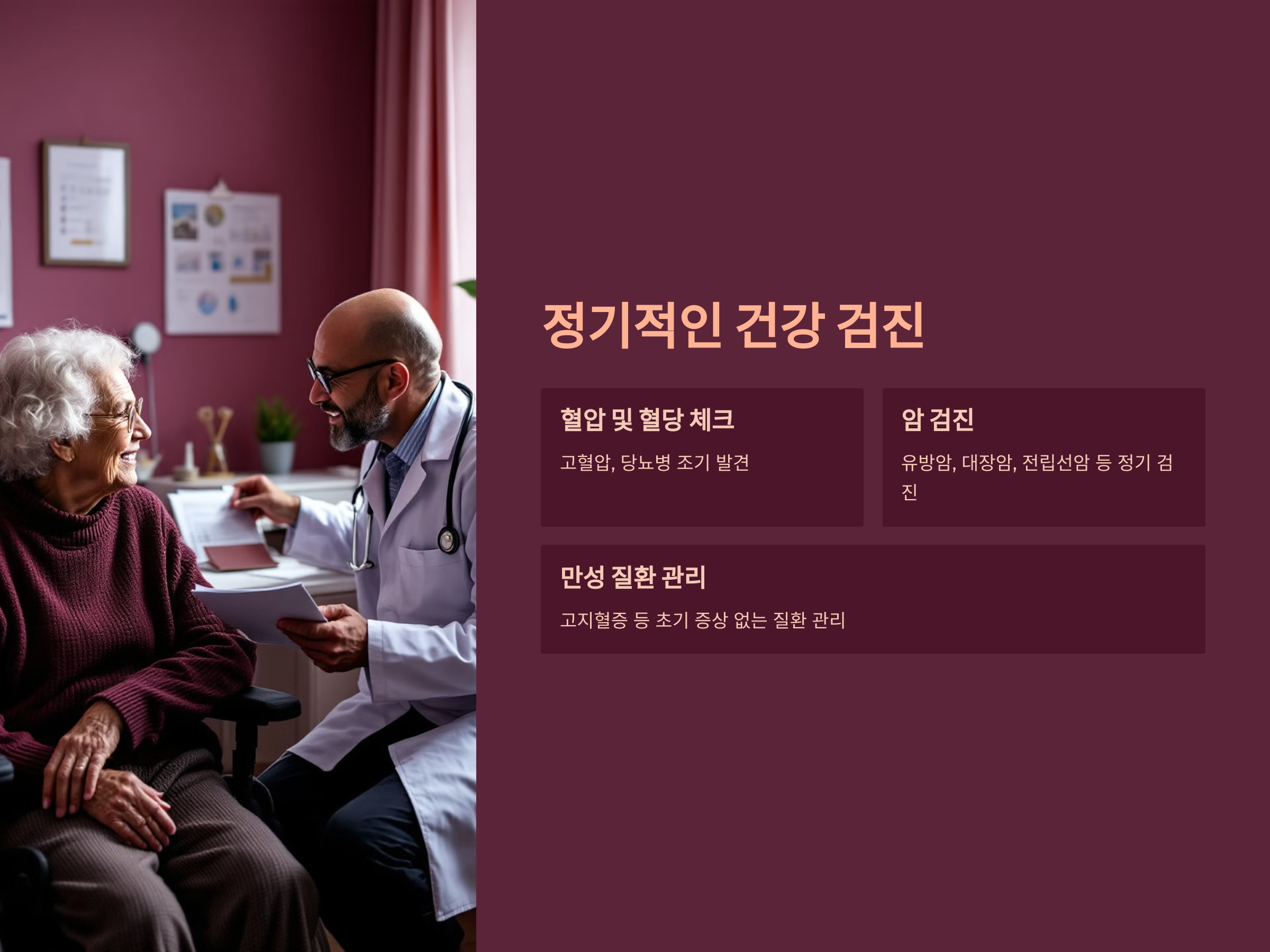 고혈압이나 당뇨병은 심각한 합병증을 유발할 수 있기 때문에, 정기적으로 혈압과 혈당을 체크하는 것이 중요합니다. 50대 이후에는 특히 이러한 검진이 필요합니다.