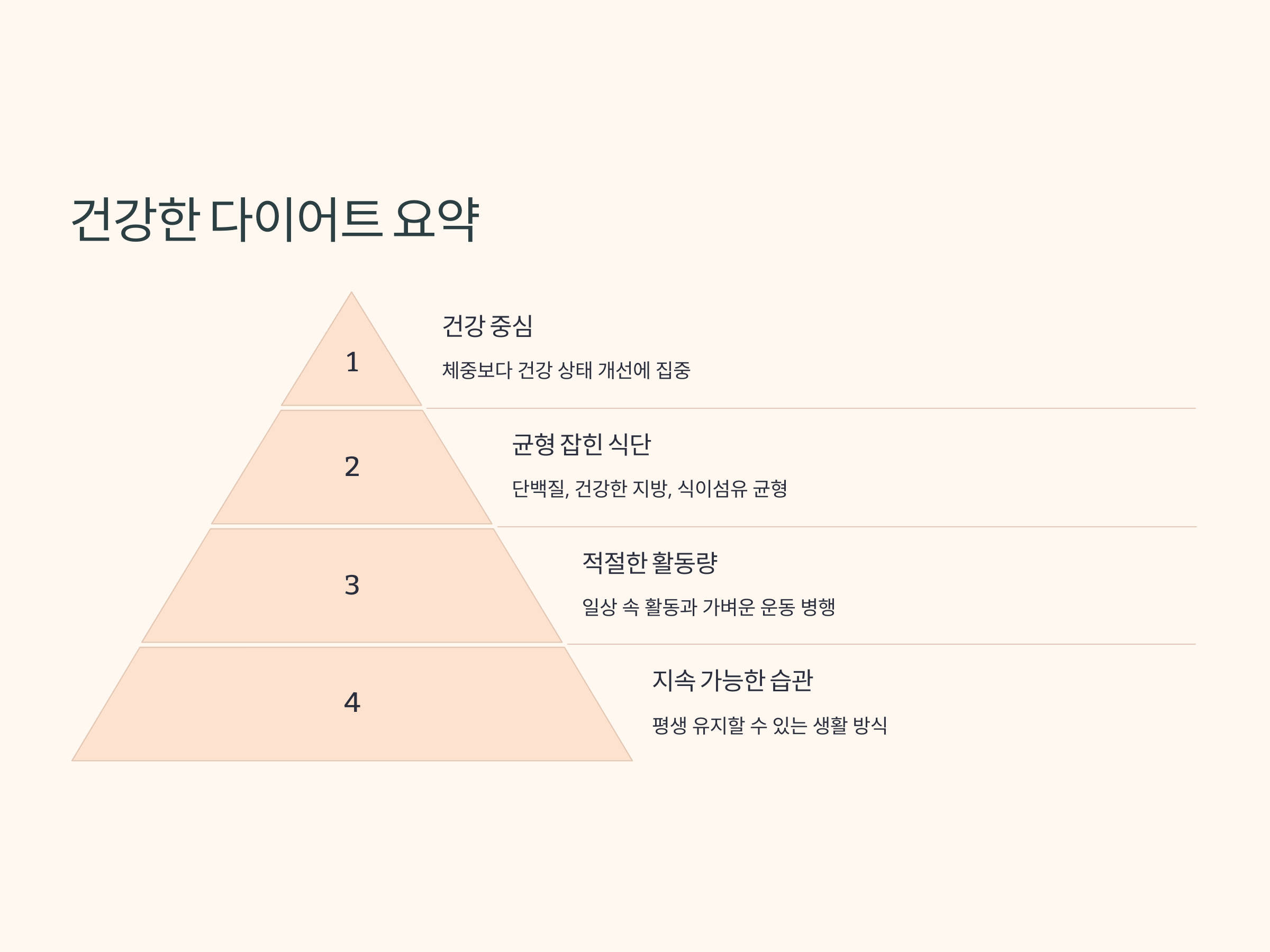 - 극단적인 다이어트 금지: 너무 적은 칼로리 섭취는 영양 불균형을 초래할 수 있습니다.
