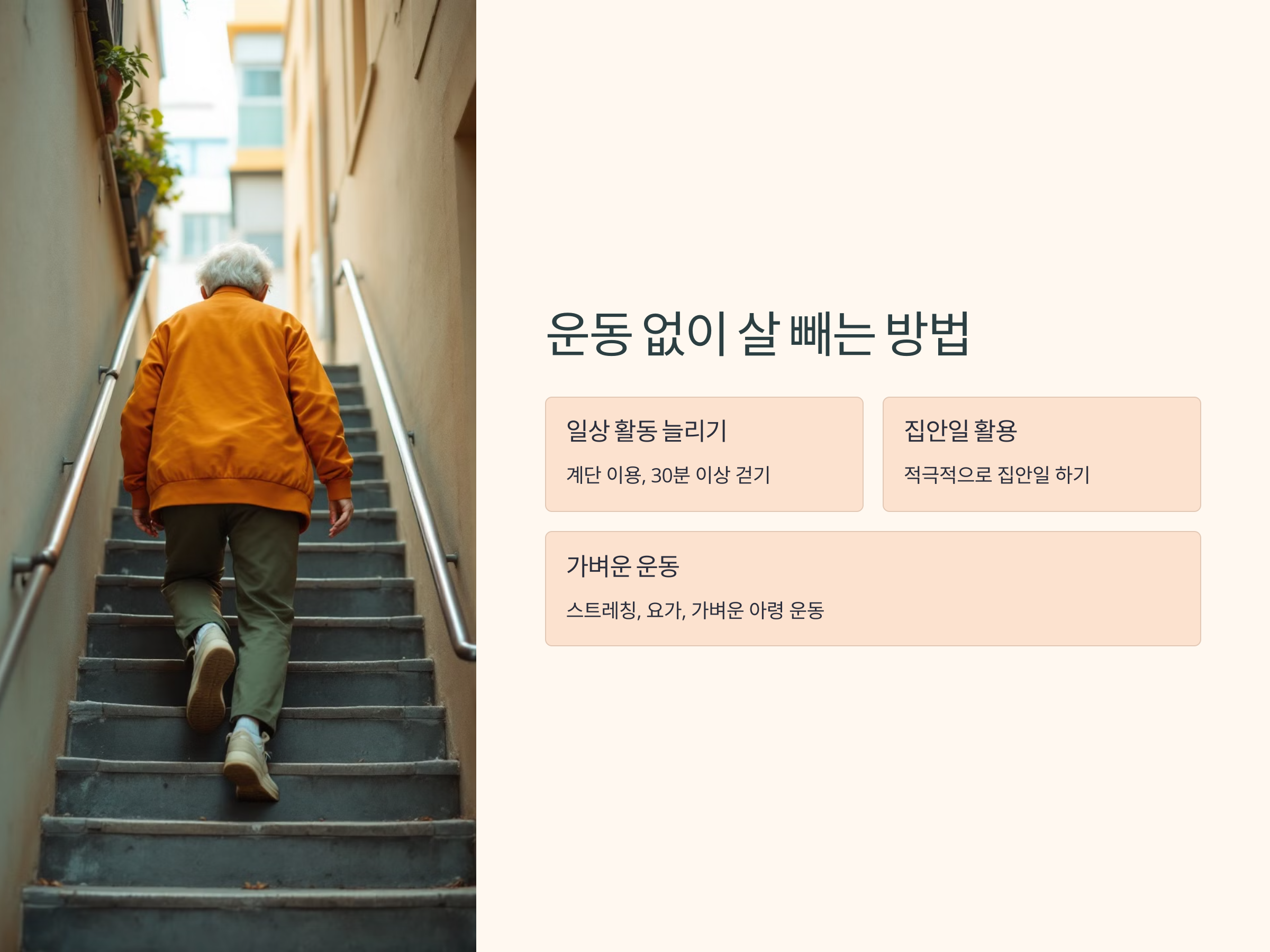 운동은 건강한 다이어트의 핵심이지만, 몸 상태에 따라 격렬한 운동이 어려울 수도 있습니다. 이럴 경우, 일상생활 속에서 자연스럽게 활동량을 늘리는 방법을 고려해볼 수 있습니다.