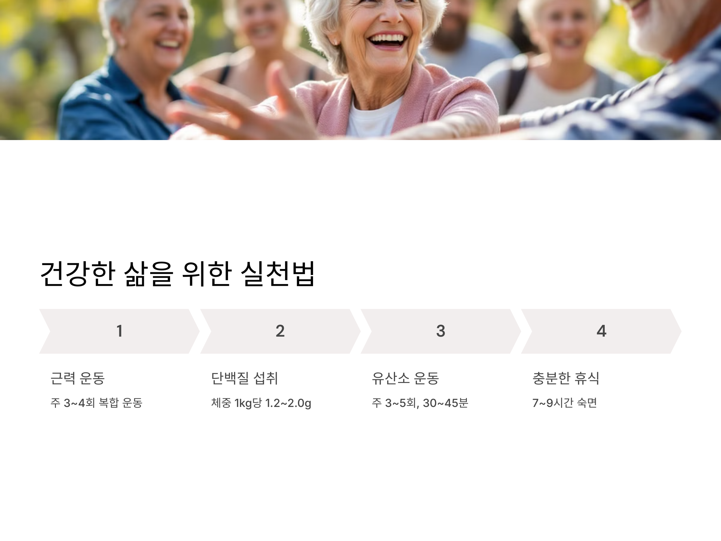 - 운동과 식단을 일상 습관화: 꾸준히 실천해야 근육량을 유지할 수 있습니다.