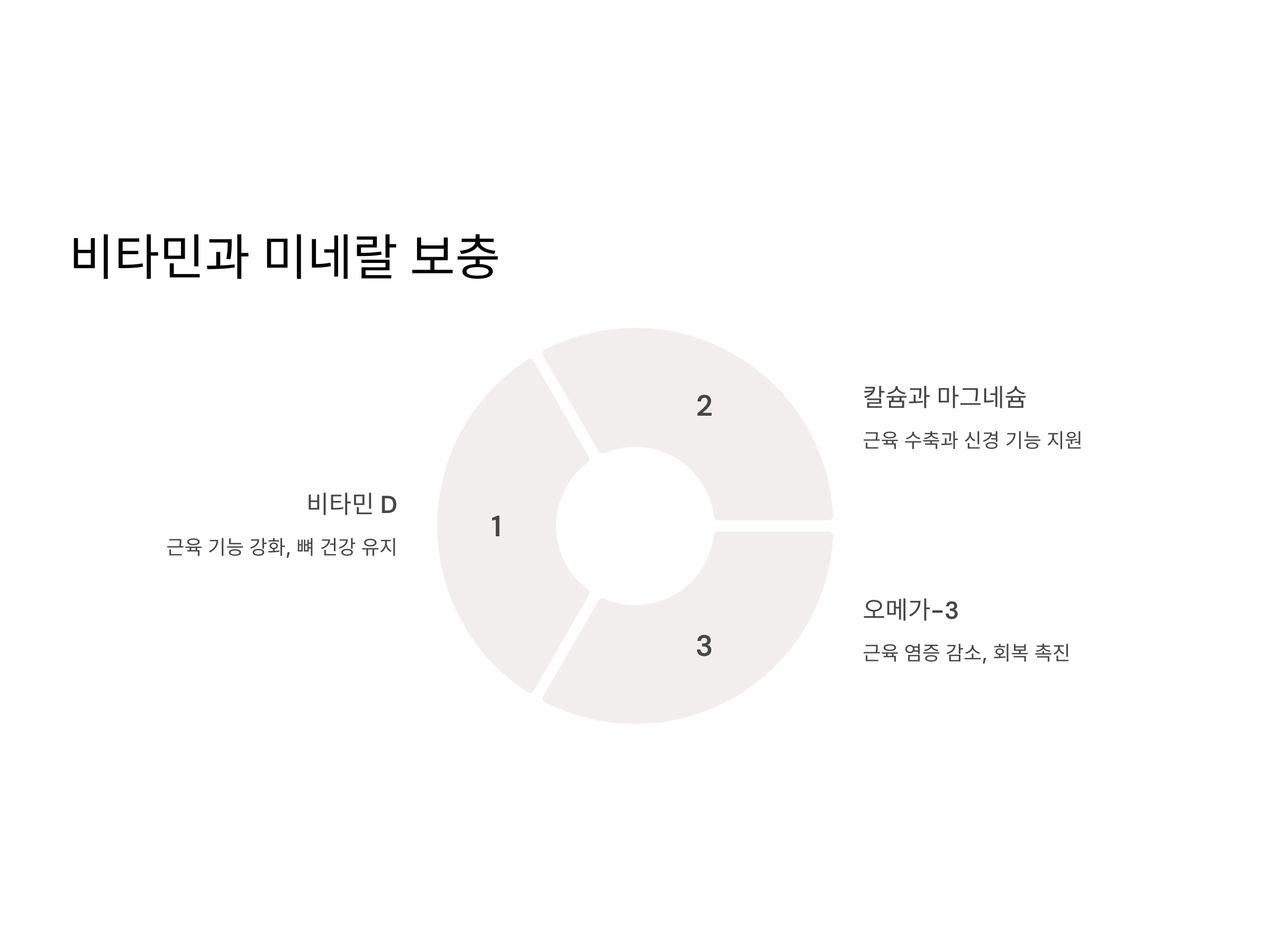 - 비타민 D: 근육 기능을 강화하고 뼈 건강을 유지하는 데 중요합니다.