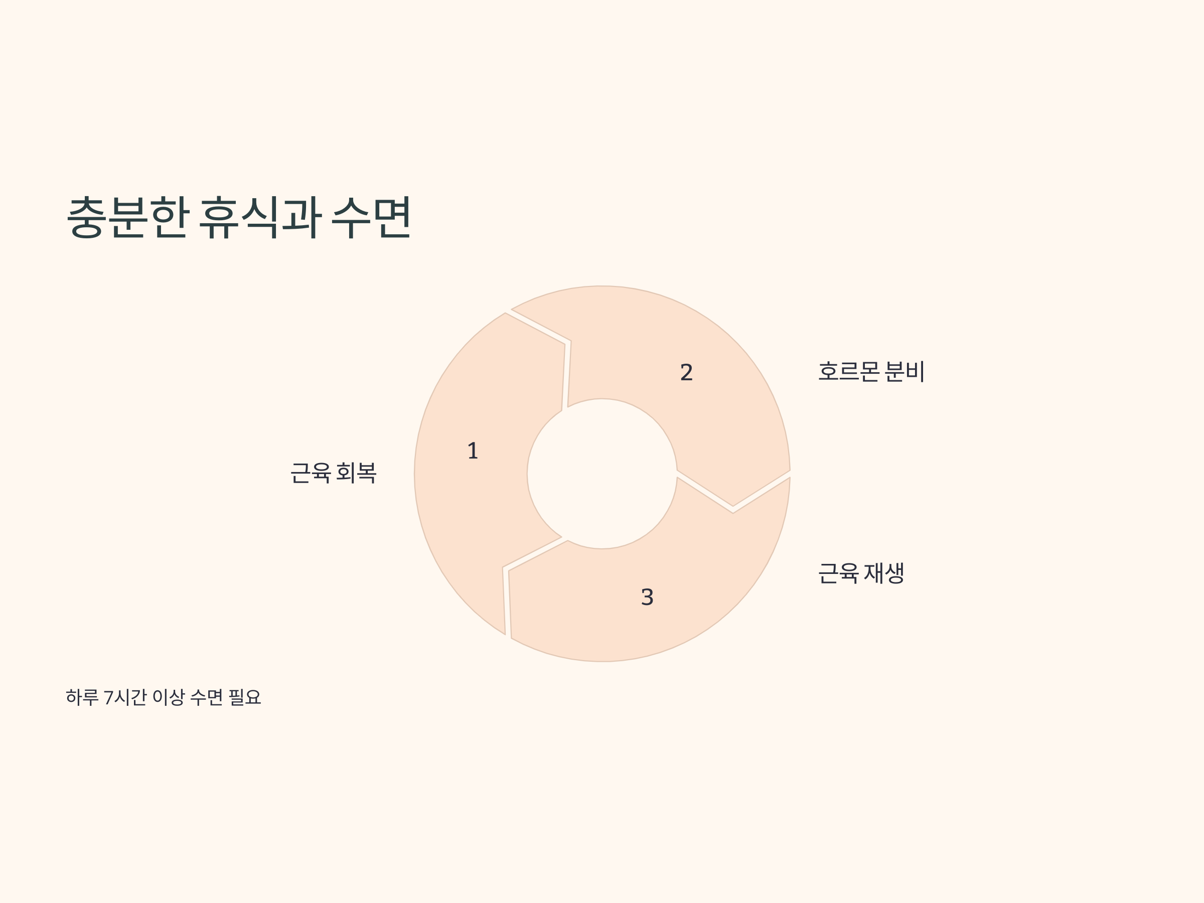 운동 후 근육은 회복되는 과정에서 성장합니다. 이 회복 과정에서 가장 중요한 것은 휴식입니다. 50대 이후에는 더 많은 휴식이 필요할 수 있습니다. 수면은 근육 회복에 중요한 역할을 하며, 호르몬 분비와 근육 재생에 필요한 시간이 제공됩니다. 따라서 하루 7시간 이상의 충분한 수면을 취하는 것이 매우 중요합니다.