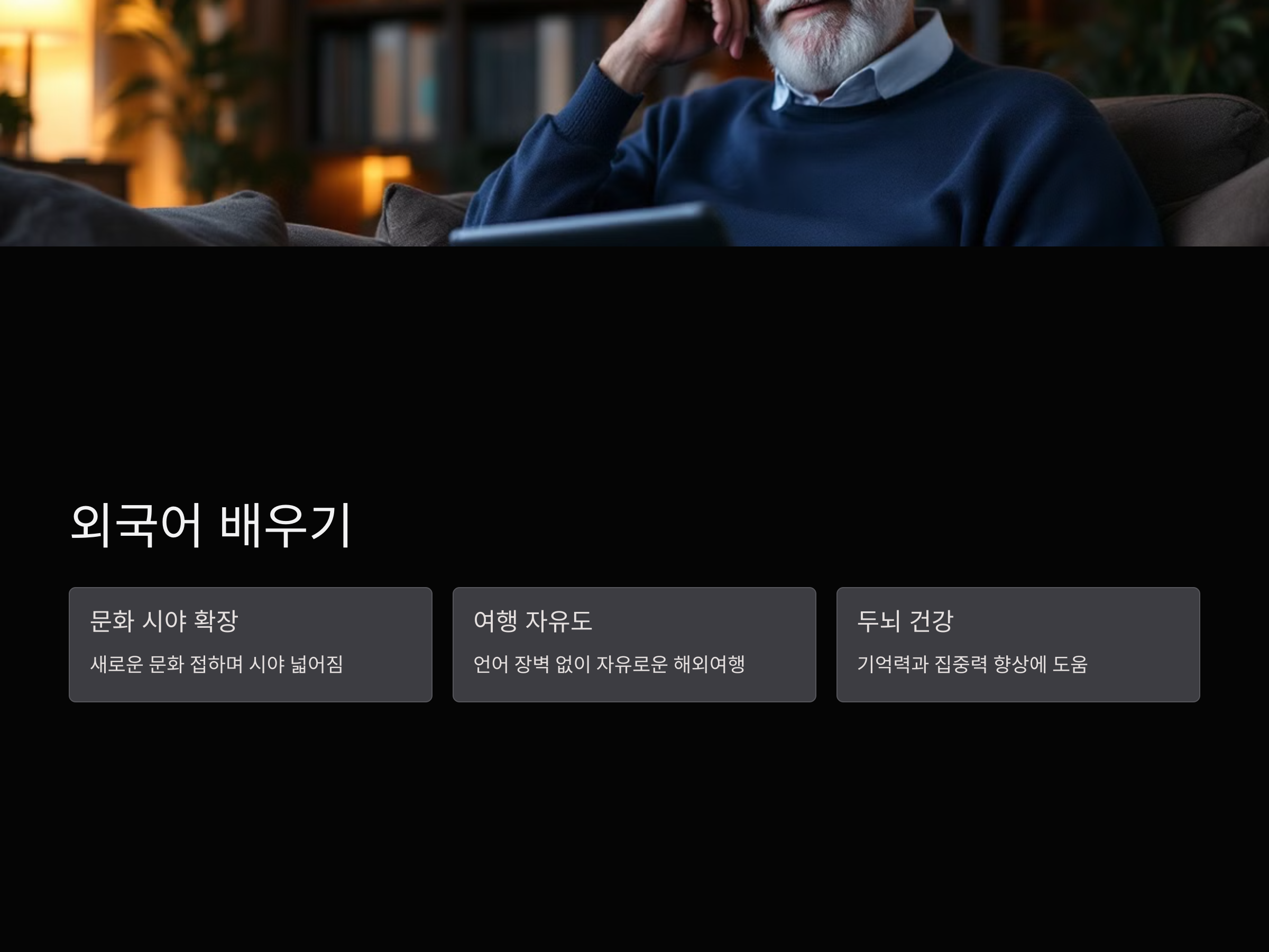 50대 이후 외국어를 배우는 것은 뇌 건강에도 좋을 뿐만 아니라, 새로운 문화를 접하고 해외여행을 더욱 즐겁게 만드는 요소가 됩니다. 특히, 영어, 일본어, 중국어와 같은 글로벌 언어를 배우면 다양한 기회가 열립니다.