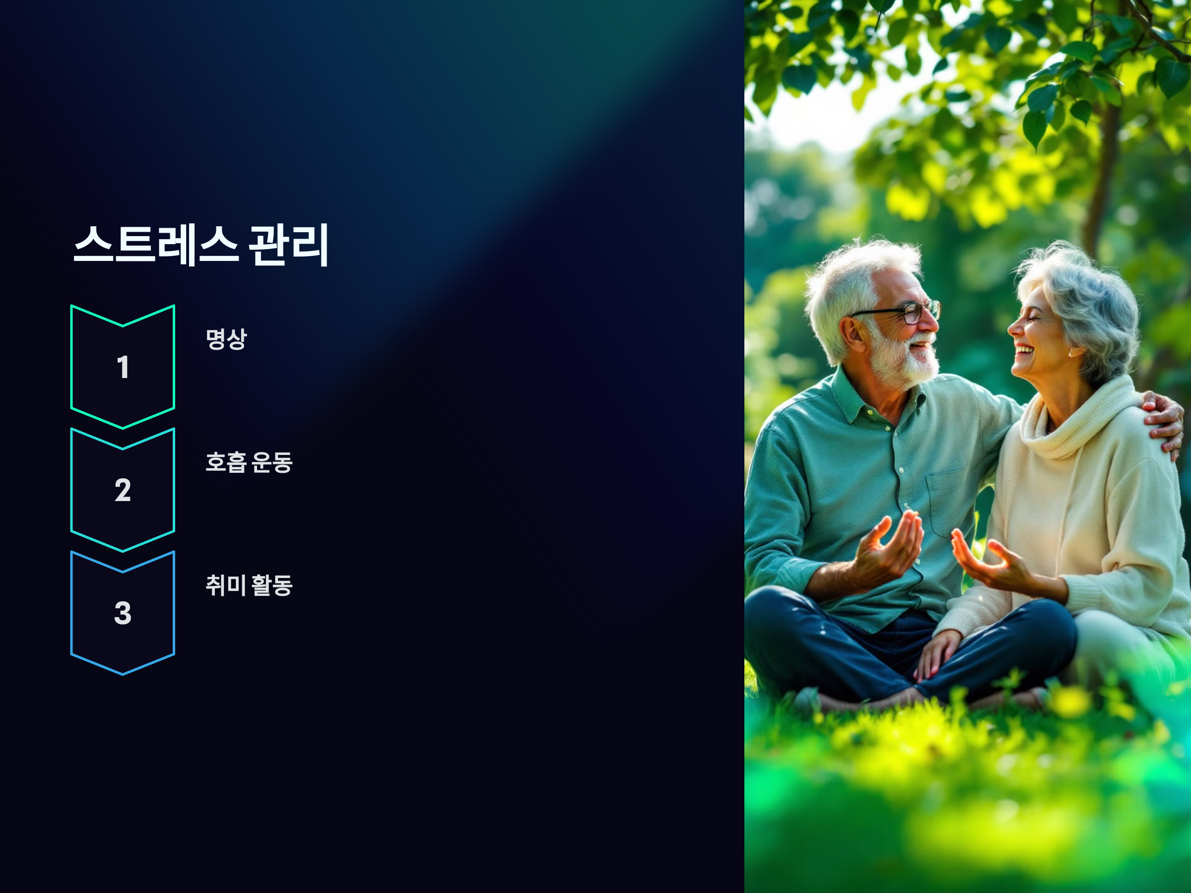 50대 이후에는 직장 생활이 끝나거나 자녀들이 독립하면서 많은 변화가 일어납니다. 이때 스트레스가 쌓일 수 있는데, 스트레스가 장기화되면 신체 건강에 악영향을 미칠 수 있습니다. 스트레스 관리는 정신 건강을 지키는 데 매우 중요합니다.