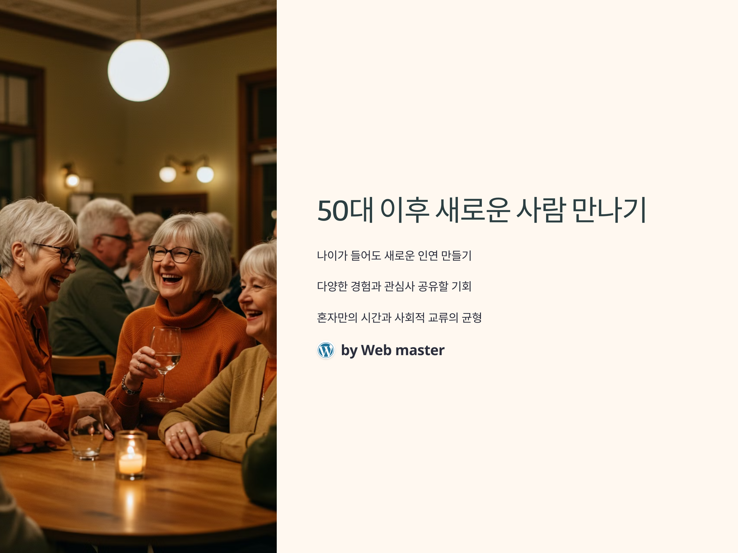 50대 이후에 새로운 사람을 만나는 것은 일상에서 쉽게 접근하기 어려운 일이 될 수 있습니다. 하지만 나이가 들수록 인생의 다양한 경험과 관심사를 공유할 수 있는 기회를 찾는 것은 중요한 일입니다. 이 글에서는 50대 이후에도 새로운 사람들을 만날 수 있는 장소와 활동을 추천하며, 인간관계를 확장하는 방법을 소개합니다. 혼자만의 시간을 즐기면서도 사회적 교류를 할 수 있는 다양한 장소를 살펴보겠습니다.