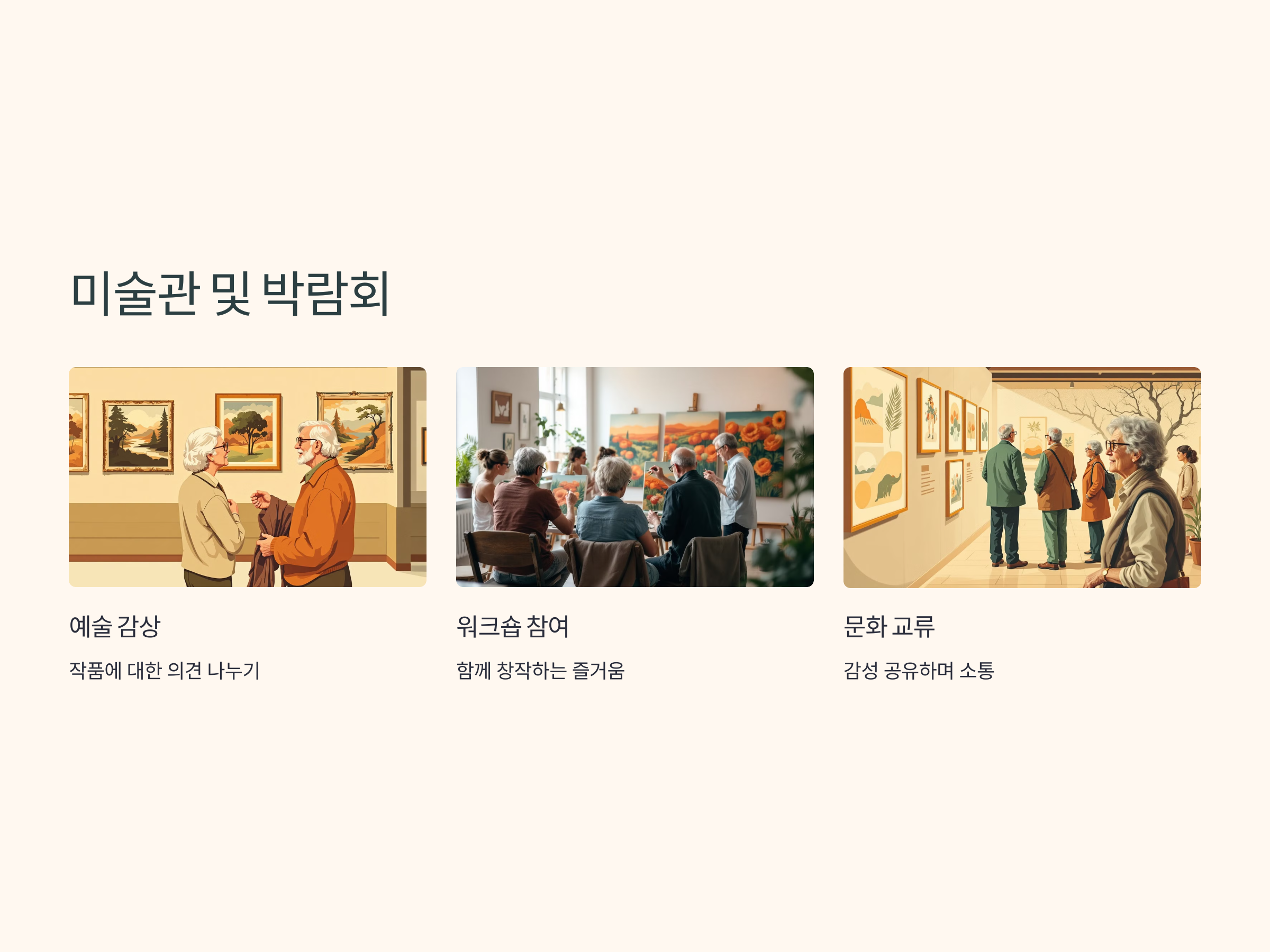 미술관이나 박람회는 예술을 좋아하는 사람들과 자연스럽게 만날 수 있는 장소입니다. 전시회를 관람하는 동안 사람들과 의견을 나누거나, 같은 전시회에 참가한 사람들과 대화를 나누는 기회가 많습니다. 이러한 장소에서는 자신의 감성을 공유하고, 예술에 대한 깊은 이야기를 나눌 수 있기 때문에 더욱 가까운 관계로 발전할 수 있습니다. 미술관은 단순히 작품을 감상하는 곳뿐만 아니라 사람들과 소통하는 장이 될 수 있습니다.