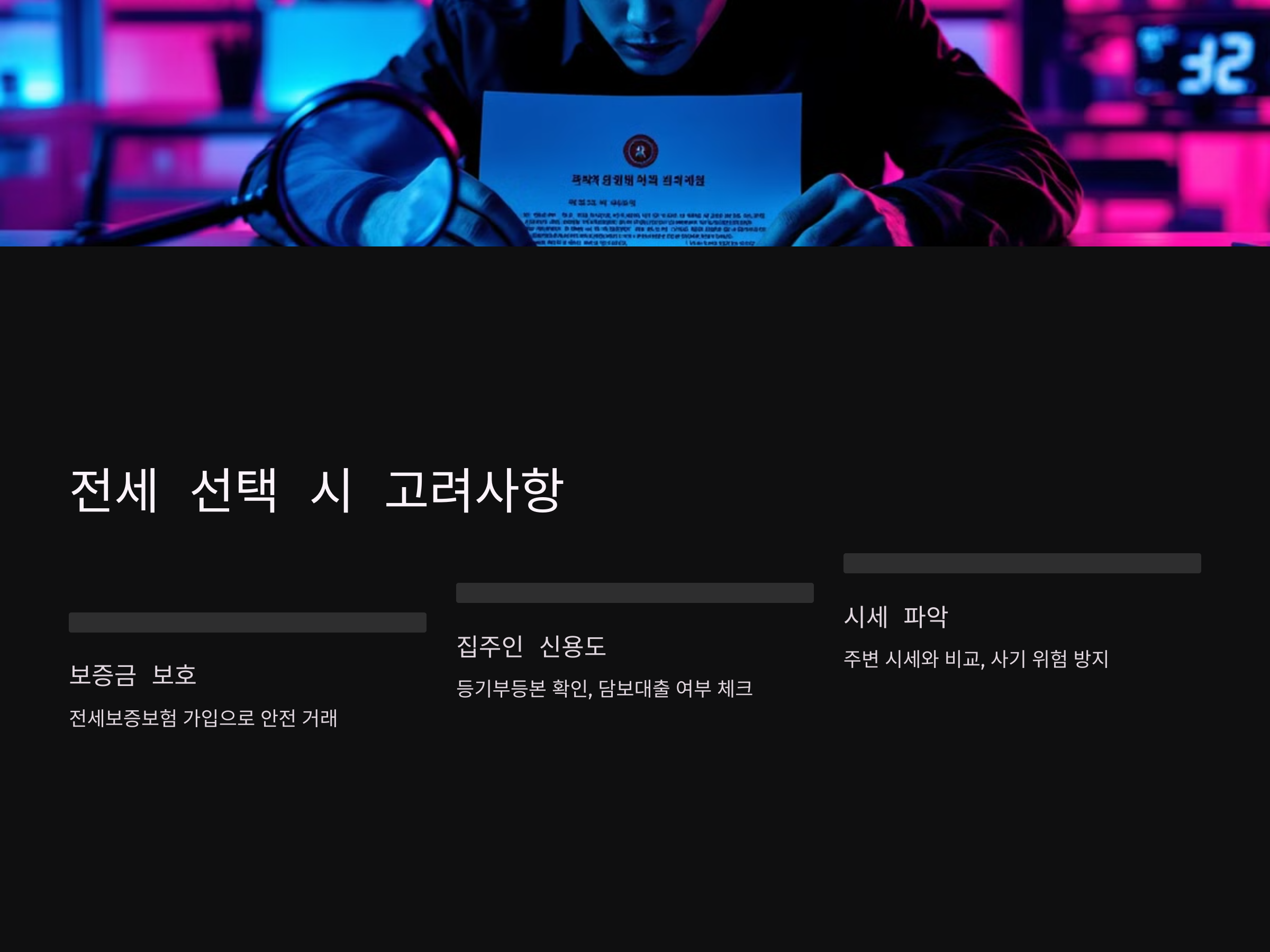 셋째, 주변 시세를 파악하는 것도 중요합니다. 전세금이 시세보다 현저히 낮거나 높은 경우, 사기 위험이 있을 수 있으므로 주변 시세를 비교한 후 신중하게 결정해야 합니다.