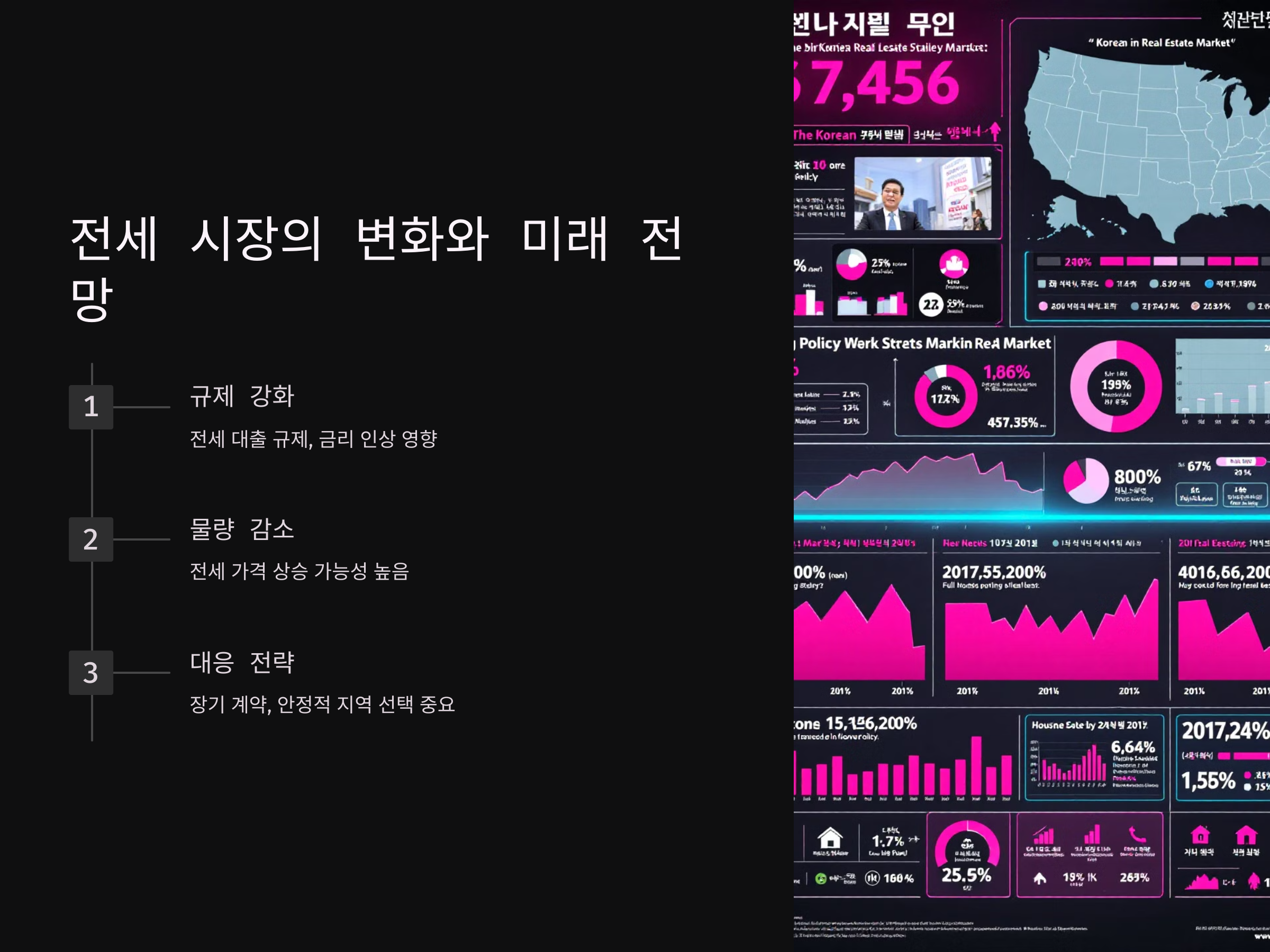 최근 부동산 시장의 변동성이 커지면서 전세 제도에도 변화가 예상됩니다. 특히, 전세 대출 규제 강화와 금리 인상 등의 요인이 전세 시장에 영향을 미칠 가능성이 큽니다. 이에 따라 전세 계약을 고려하는 경우, 중장기적인 부동산 시장 전망을 함께 분석하는 것이 필요합니다.