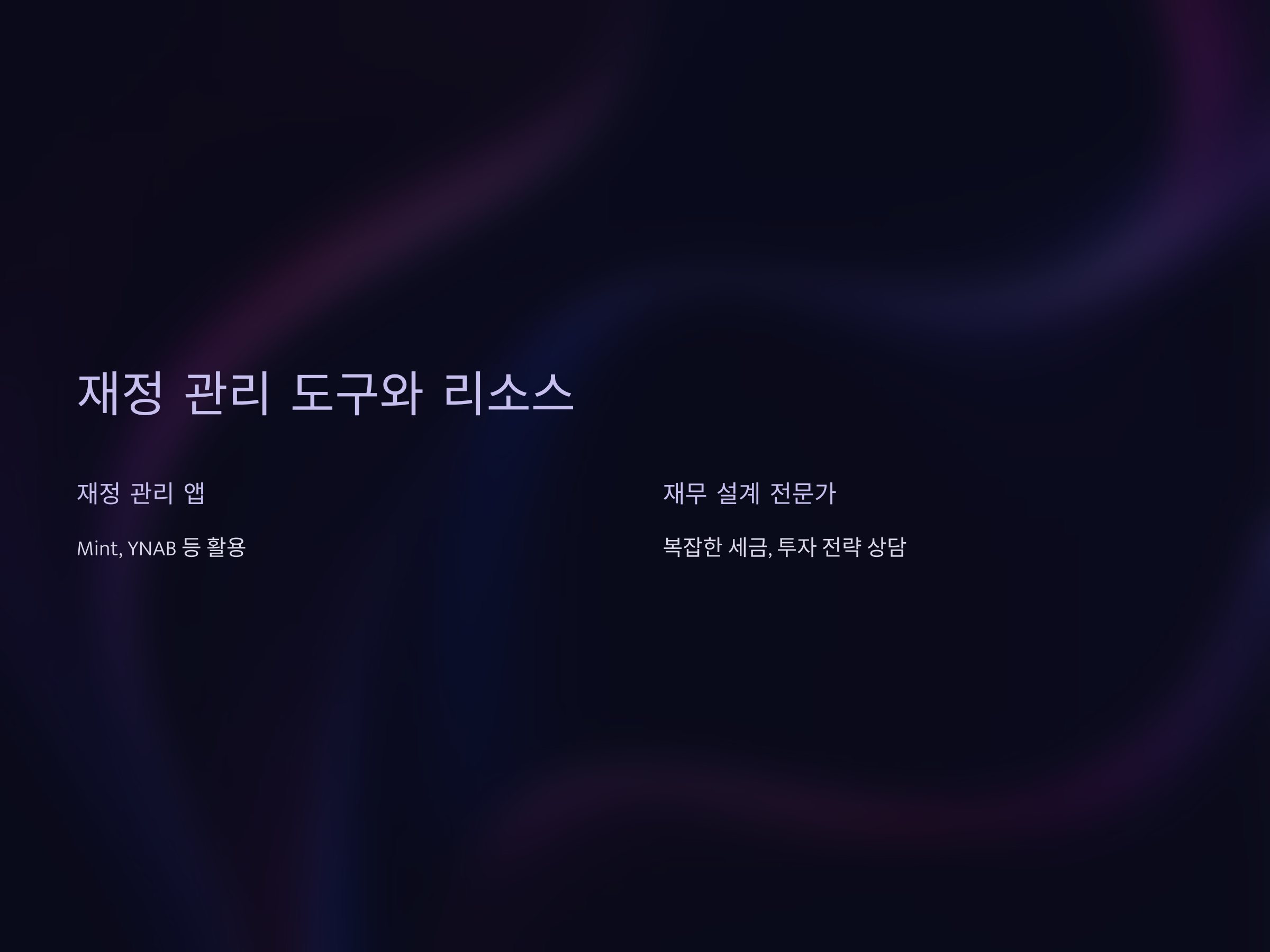 - 재무 설계 전문가: 재정 전문가나 재무 설계사와 상담을 통해 더 구체적인 계획을 세우는 것도 좋은 방법입니다. 전문가의 도움을 받아 복잡한 세금 문제나 투자 전략 등을 세울 수 있습니다.