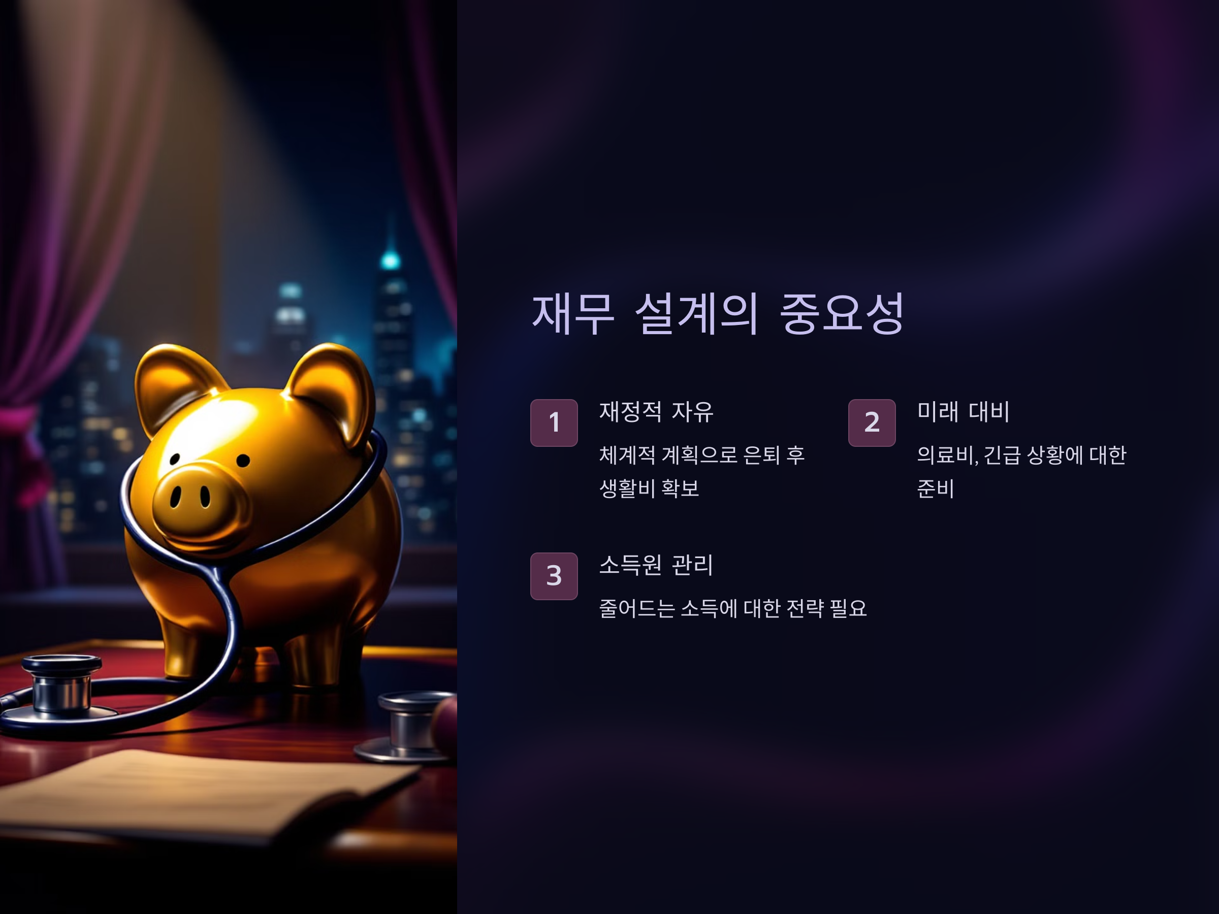 50대 이후 재무 설계는 단순히 돈을 모으는 것을 넘어서, 은퇴 후의 안정적인 생활을 위한 전략을 세우는 것입니다. 그동안의 직장 생활에서 얻은 자산을 어떻게 분배하고 투자할 것인지, 은퇴 후에 필요한 자금은 얼마나 되는지에 대한 구체적인 계획이 필요합니다.