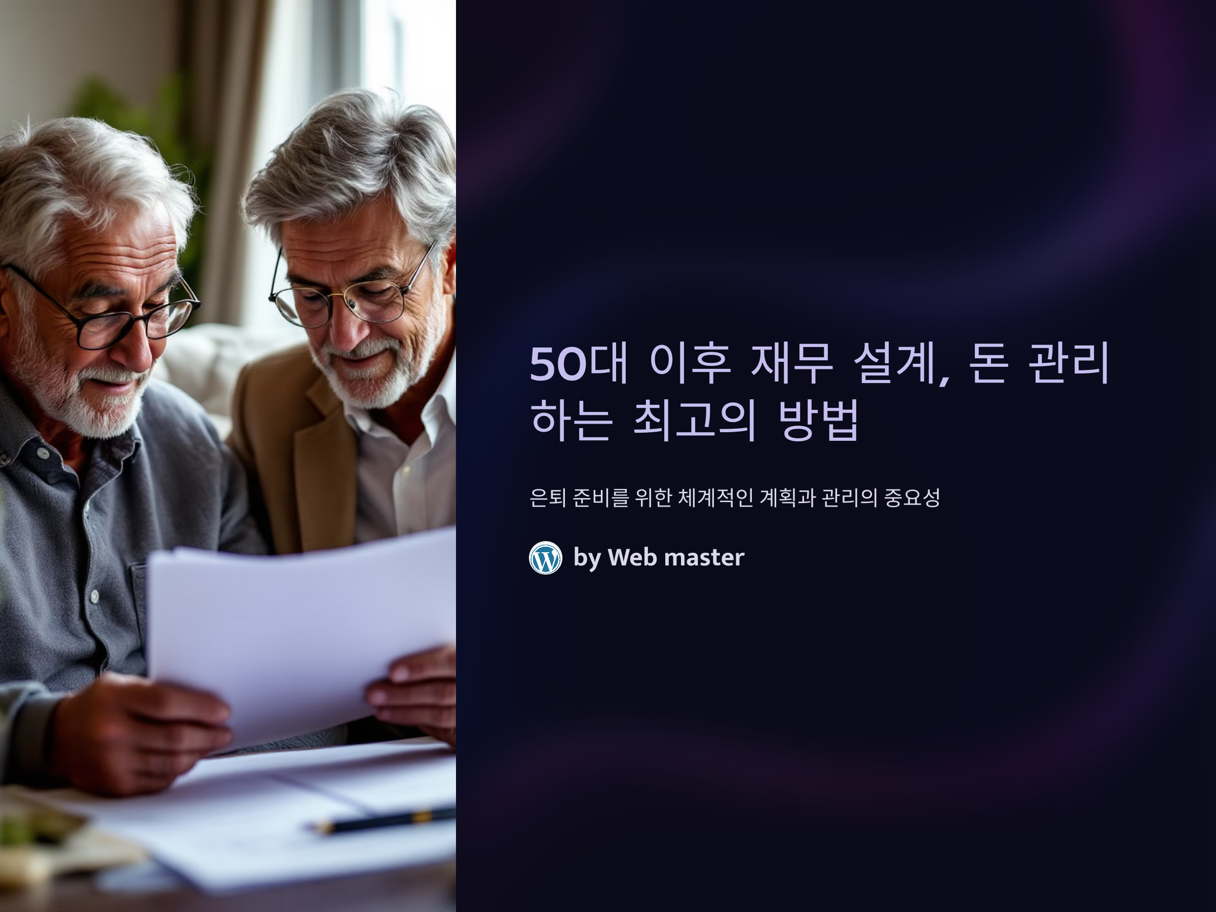 50대 이후의 재무 설계는 단기적인 목표가 아니라 장기적인 안정을 위한 투자입니다. 올바른 재정 관리 전략을 통해 은퇴 후에도 안락한 삶을 누릴 수 있습니다. 앞으로의 재정적 안정을 위해 지금부터 체계적인 준비를 시작해보세요!