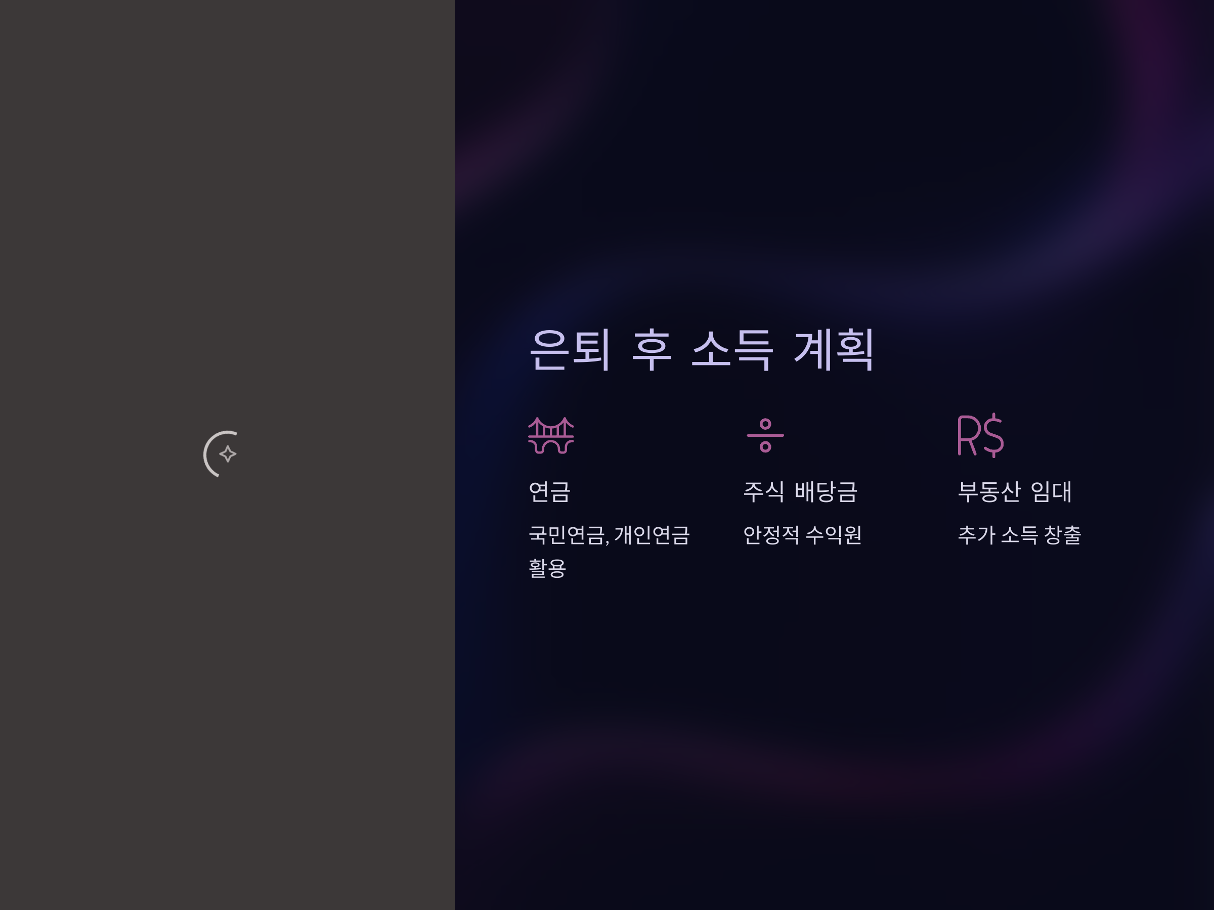 특히, 소득원이 줄어들거나 없어지는 경우가 많기 때문에 지금부터 자산을 어떻게 배분할지, 어떻게 늘려갈지에 대한 전략이 필요합니다. 이를 통해 은퇴 후에 일을 하지 않고도 일정한 수입을 얻을 수 있는 기반을 마련하는 것이 중요합니다.