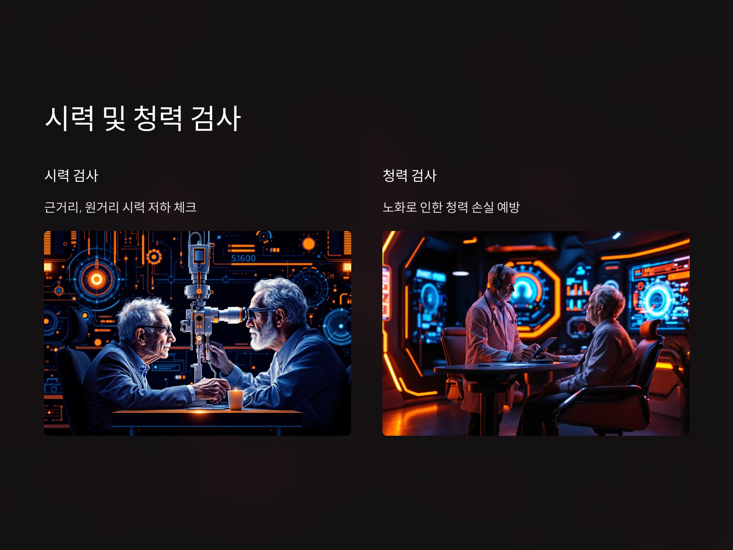 50대가 되면 시력과 청력도 서서히 저하되기 시작합니다. 이를 예방하거나 개선하기 위해 주기적인 검사가 필요합니다.