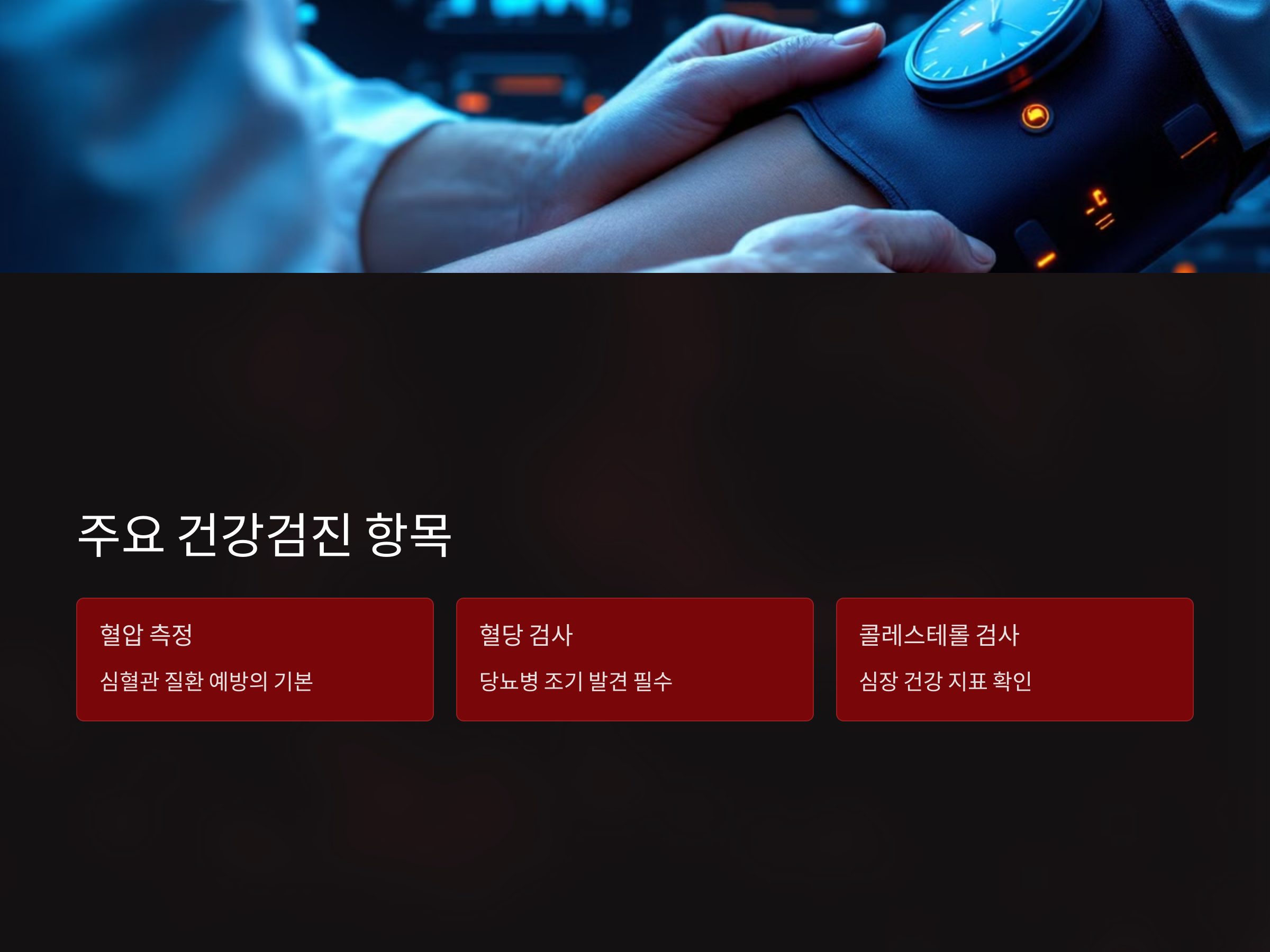 고혈압은 뇌졸중, 심근경색 등 여러 가지 심혈관 질환의 원인이 될 수 있습니다. 50대 이후에는 혈압이 급격하게 상승할 수 있기 때문에 정기적으로 혈압을 측정하고 관리하는 것이 중요합니다.