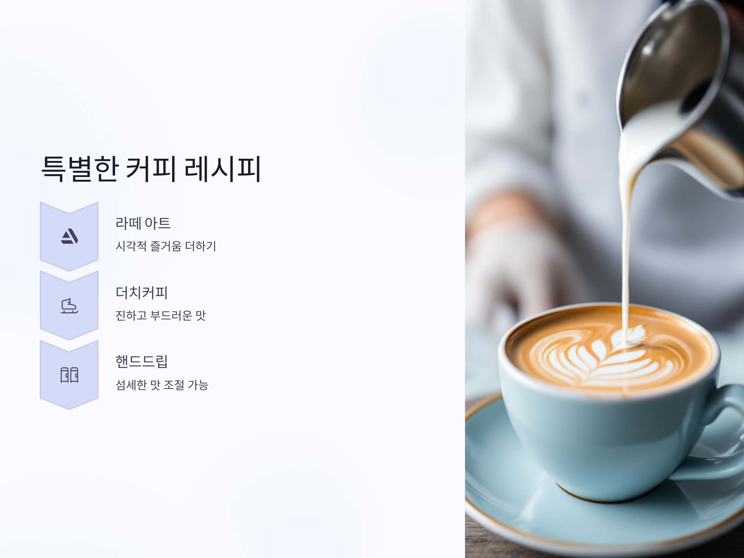 홈카페에서 50대 이상이 즐길 수 있는 특별한 커피 레시피를 소개합니다. 첫 번째는 라떼 아트입니다. 라떼 아트는 커피를 마시는 즐거움을 시각적으로도 즐길 수 있는 방법입니다. 라떼를 만들 때 우유의 질감과 커피의 농도를 잘 맞추면, 다양한 그림을 그릴 수 있습니다. 이 과정은 매우 재미있고, 나만의 커피를 만드는 기쁨을 느낄 수 있습니다.