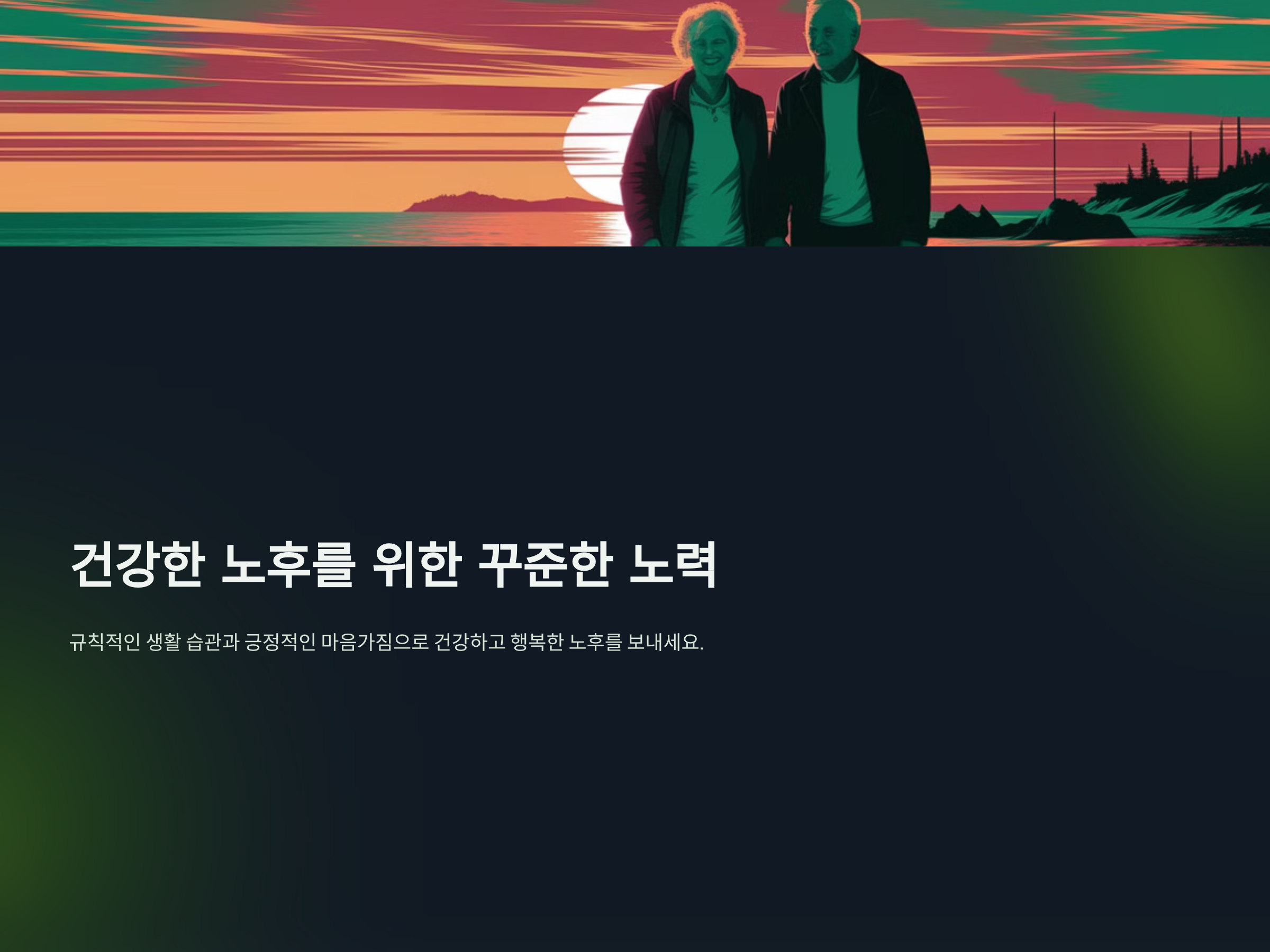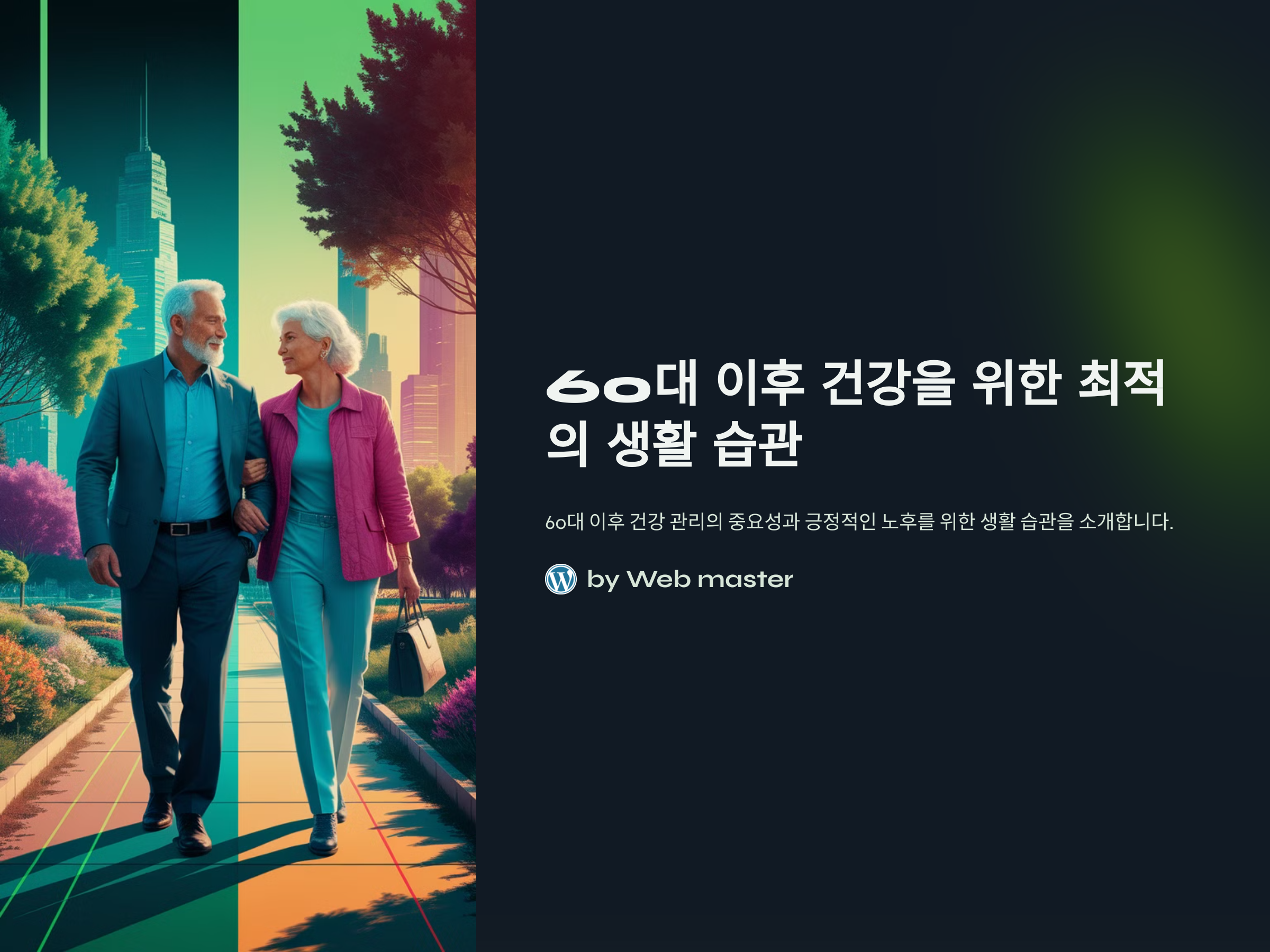 60대 이후의 건강은 우리의 노력과 습관에 달려 있습니다. 적극적인 운동과 균형 잡힌 식단, 정신적 건강 관리를 통해 활기차고 건강한 노후를 보내시기 바랍니다. 오늘 소개한 생활 습관들을 실천하면서 건강한 삶을 유지하세요.