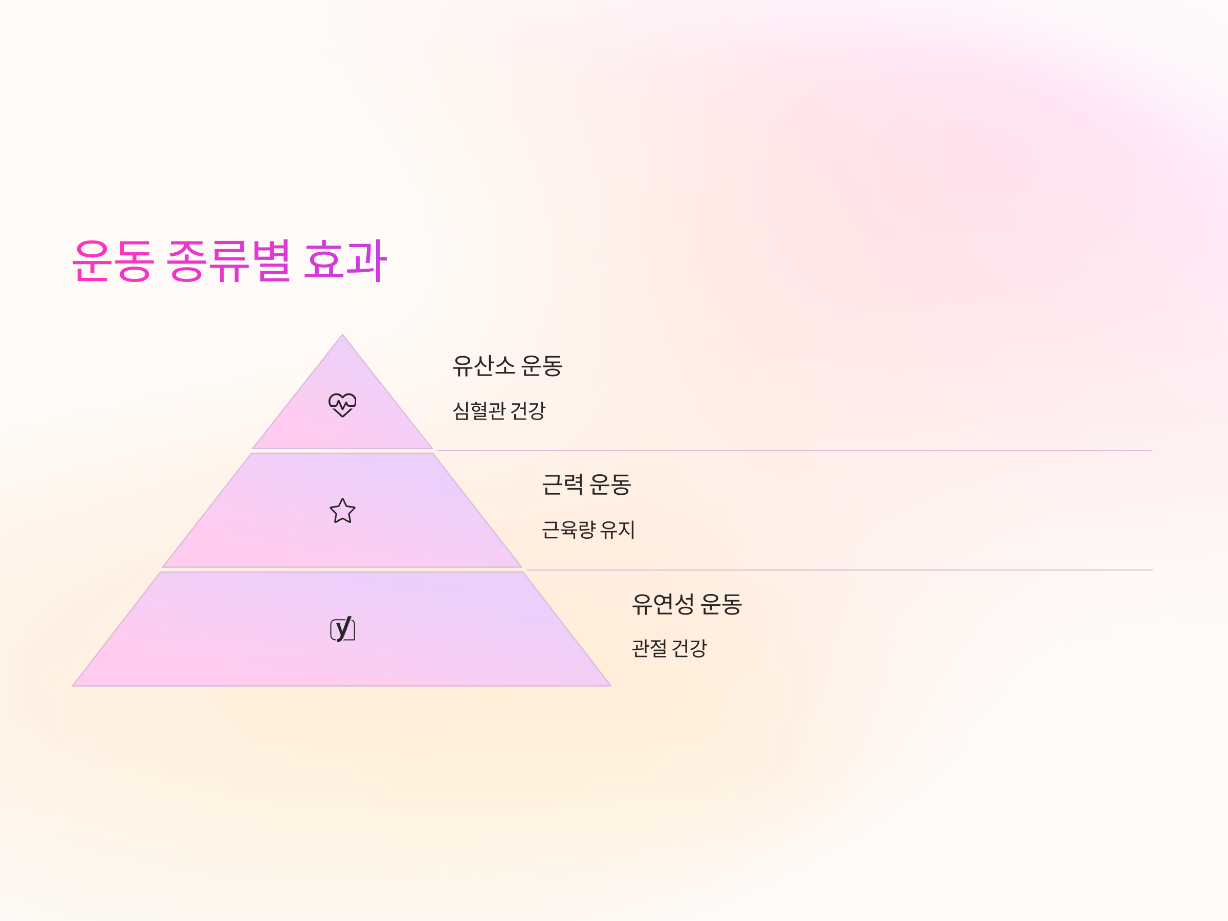 운동의 종류에는 유산소 운동, 근력 운동, 유연성 운동 등이 있으며, 각 운동은 서로 보완적인 역할을 합니다. 적당한 운동은 피로를 덜어주고, 신체 건강을 유지하는 데 도움을 주지만 과도한 운동은 부상을 초래할 수 있으므로 주의가 필요합니다.