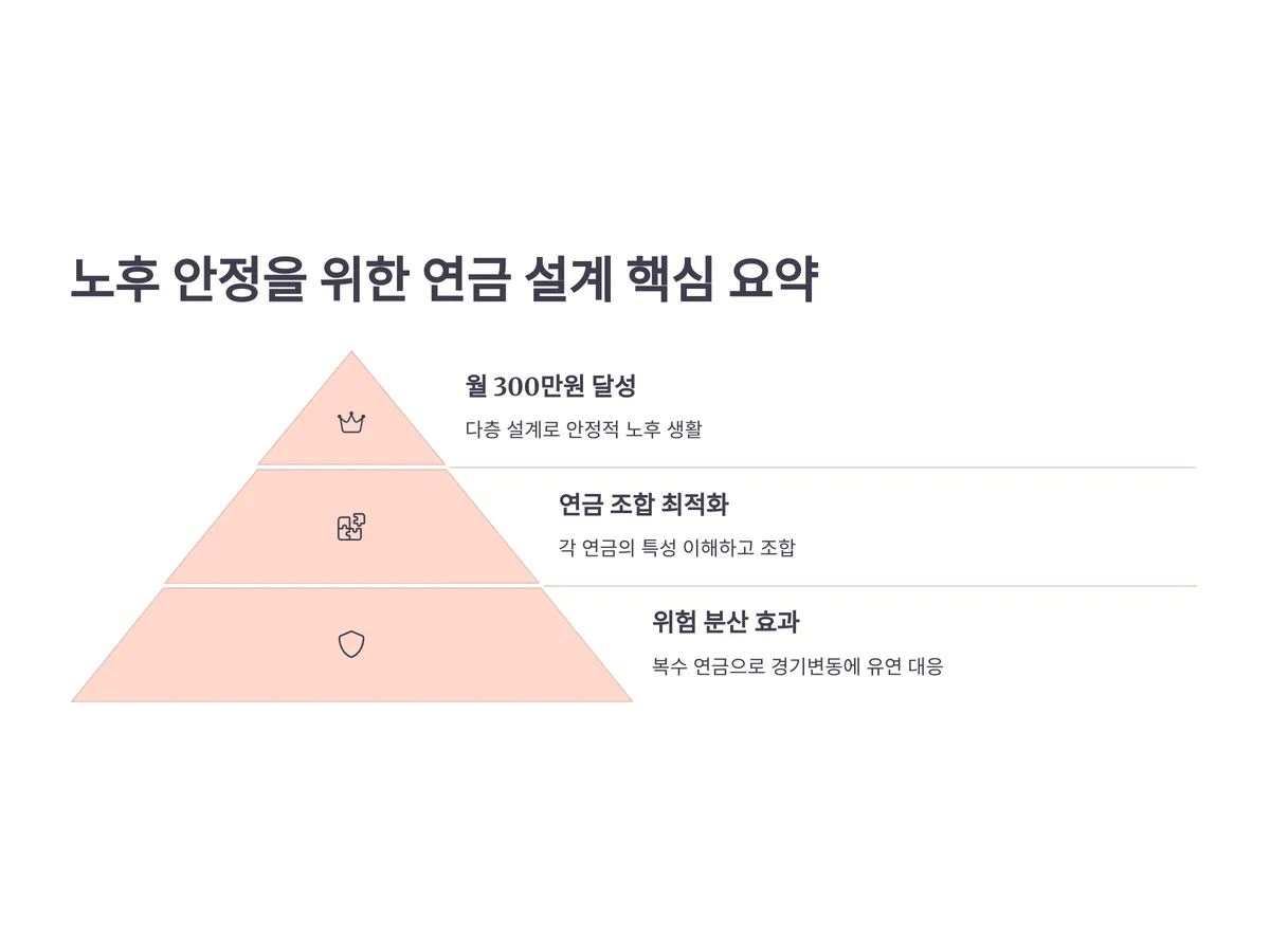 지금까지 살펴본 모든 연금 수단을 적절히 조합하면, 매달 300만원 수령은 충분히 현실적입니다. 아래는 그 예시입니다.