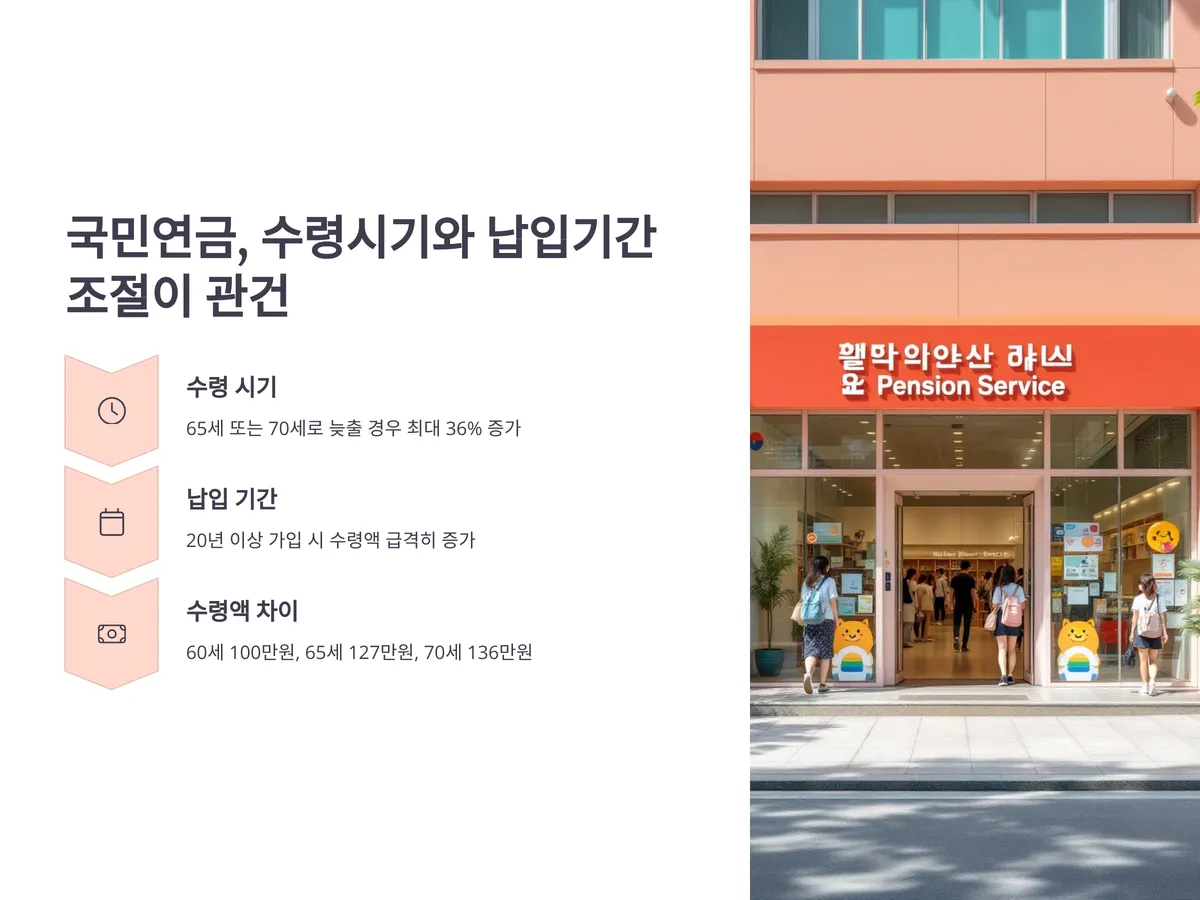 국민연금은 가장 기본적인 노후소득보장 장치입니다. 하지만 단순히 60세부터 받는 것이 능사는 아닙니다. 수령 시기를 65세 또는 70세로 늦출 경우 최대 36%까지 더 받을 수 있다는 사실, 알고 계셨나요?