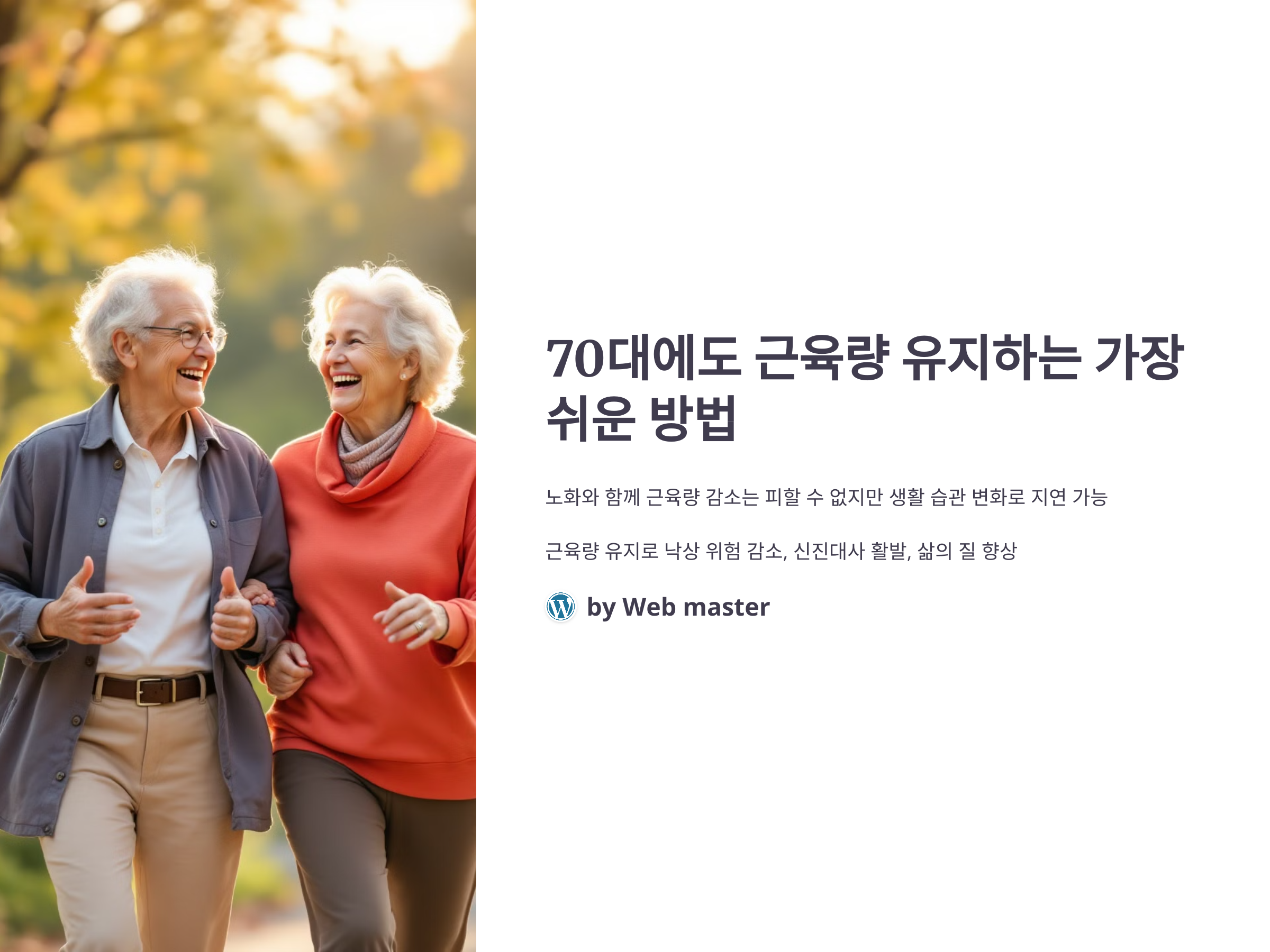 이 글에서는 70대에도 쉽게 실천할 수 있는 근육 유지 방법을 소개합니다. 과격한 운동이 아니라, 누구나 실천할 수 있는 쉬운 방법들로 구성했으니 끝까지 읽고 따라 해 보세요. 근육량을 유지하면 낙상 위험이 줄어들고, 신진대사가 활발해지며, 전반적인 삶의 질이 향상됩니다.