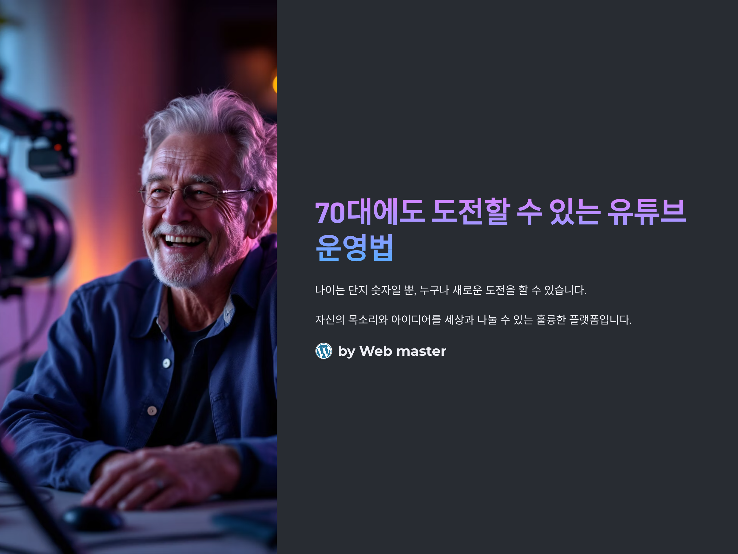 70대에도 유튜브를 시작할 수 있다는 사실, 알고 계셨나요? 나이는 단지 숫자일 뿐, 누구나 새로운 도전을 할 수 있습니다. 특히 유튜브는 그 누구나 자신의 목소리와 아이디어를 세상과 나눌 수 있는 훌륭한 플랫폼입니다. 이 글에서는 70대 이상이 유튜브 채널을 운영할 때 유용한 팁과 전략을 소개하며, 어떻게 자신만의 유니크한 콘텐츠를 만들 수 있는지, 그리고 성공적인 채널 운영을 위한 실용적인 조언을 드리겠습니다.
